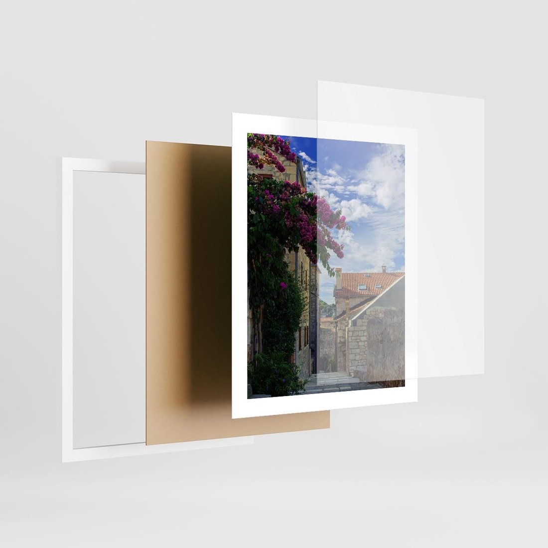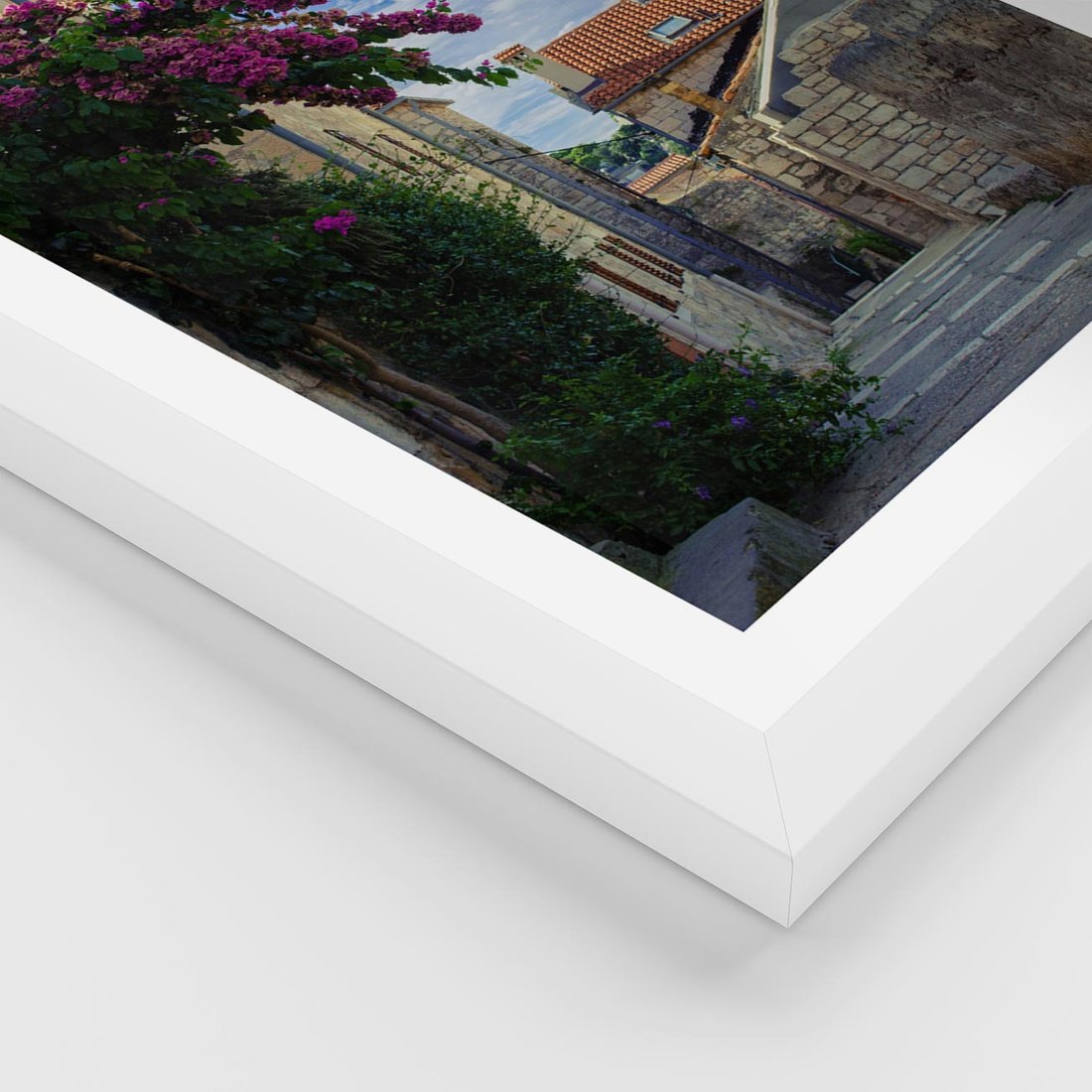 Plakat w ramie 40x50 - Uliczka: perspektywa w mieście - uliczka, perspektywa - rama biała