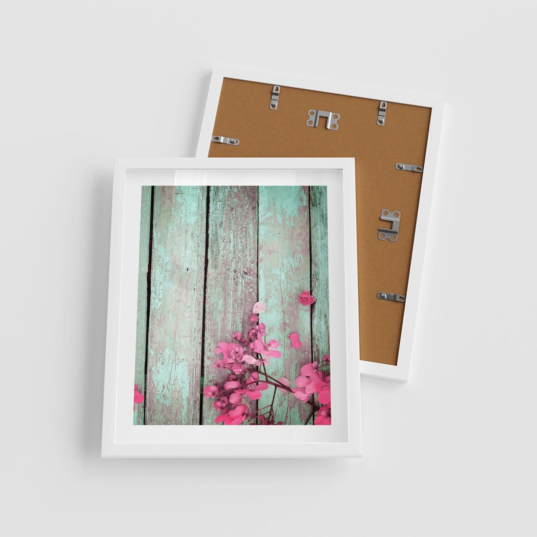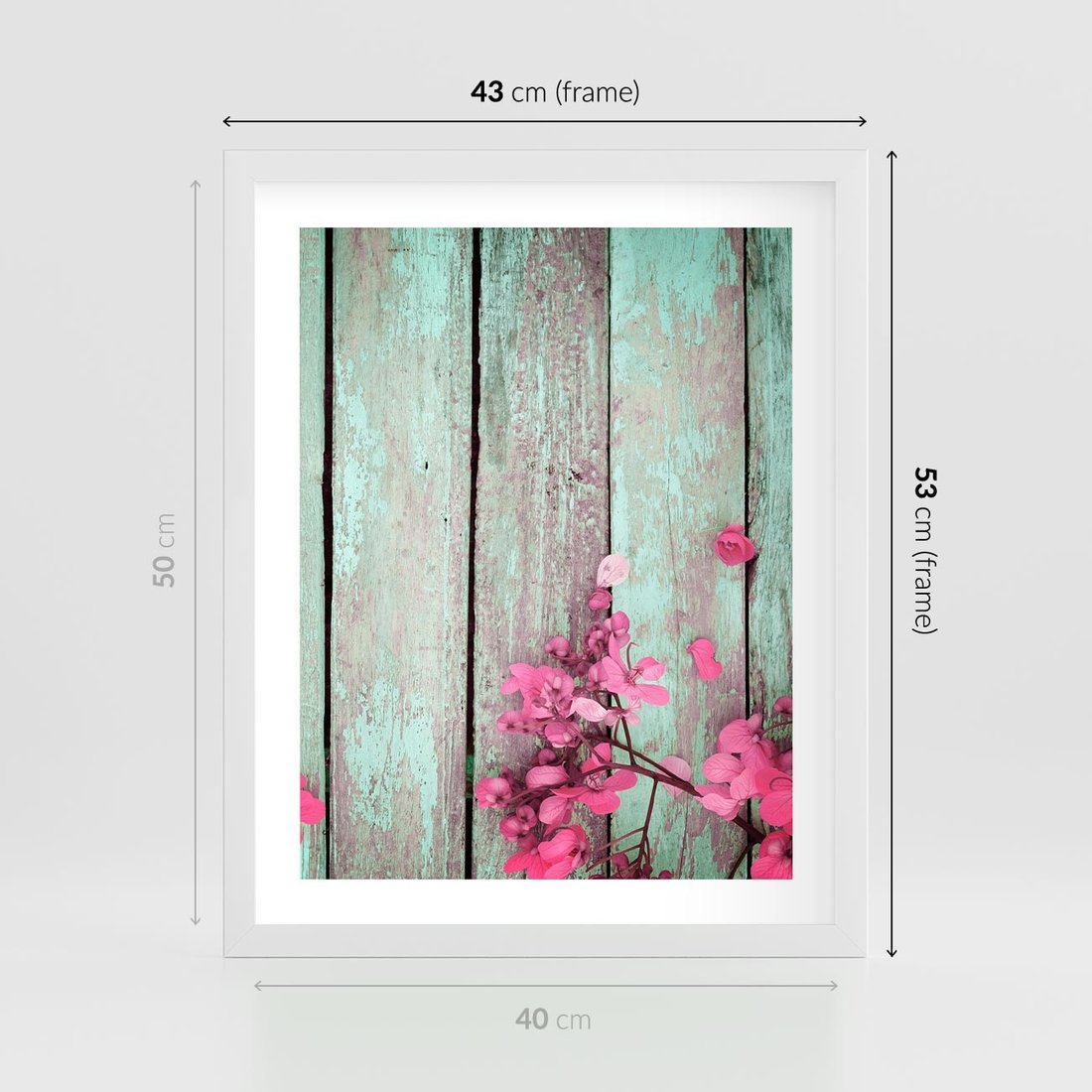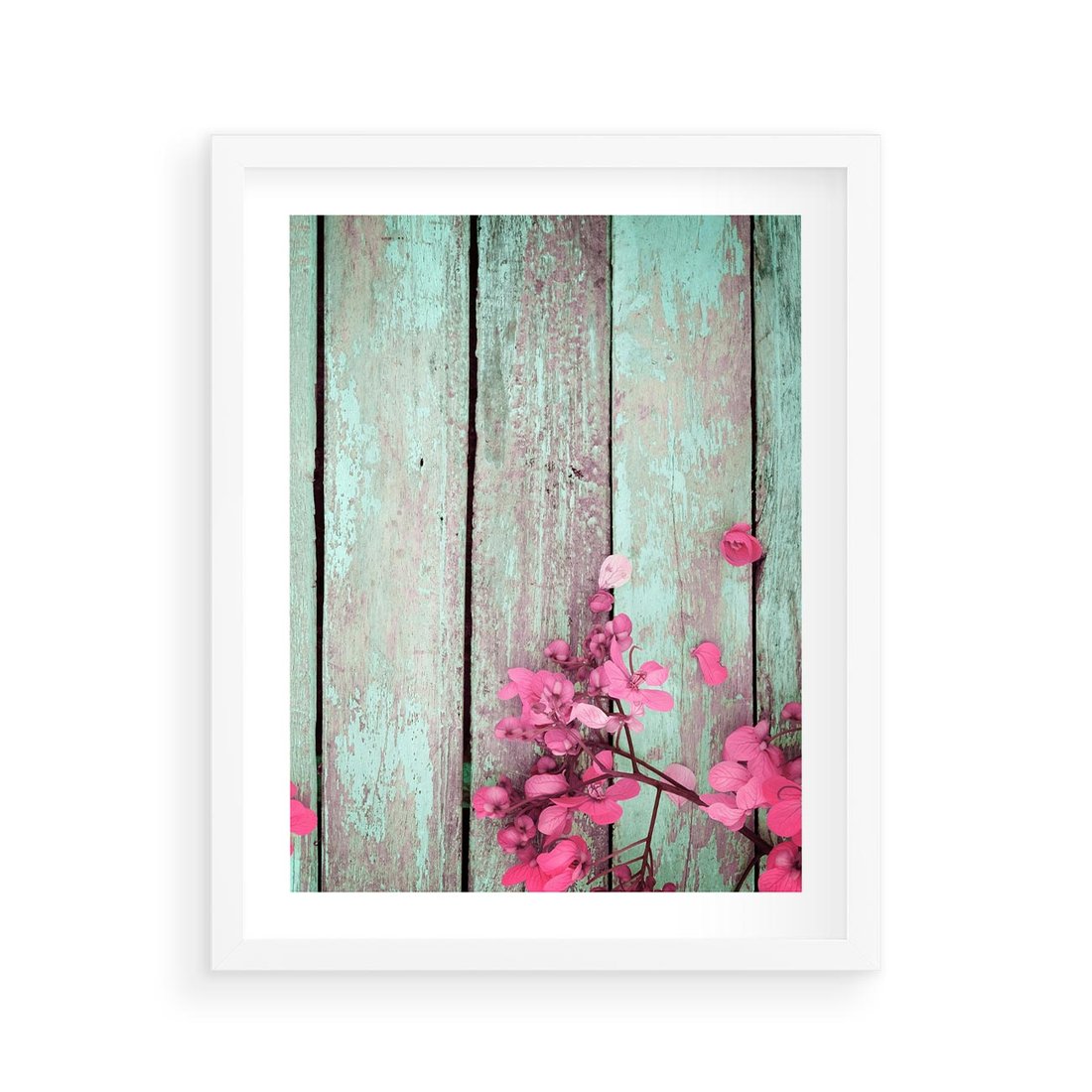 Plakat w ramie 40x50 - Urok Dawnych Czasów - kwiaty, deski - rama biała