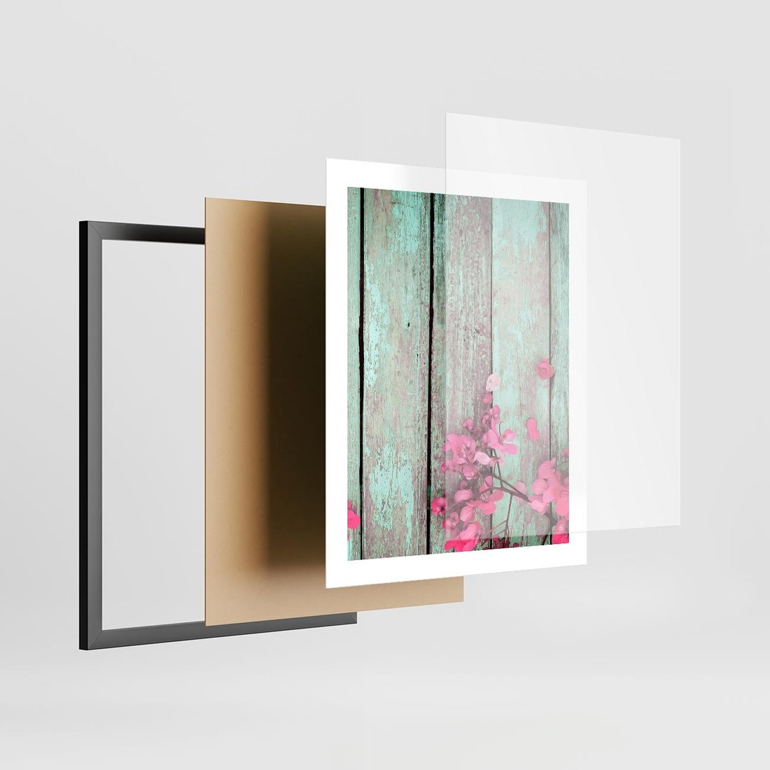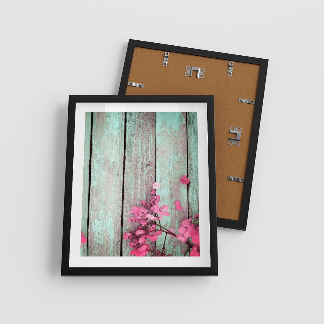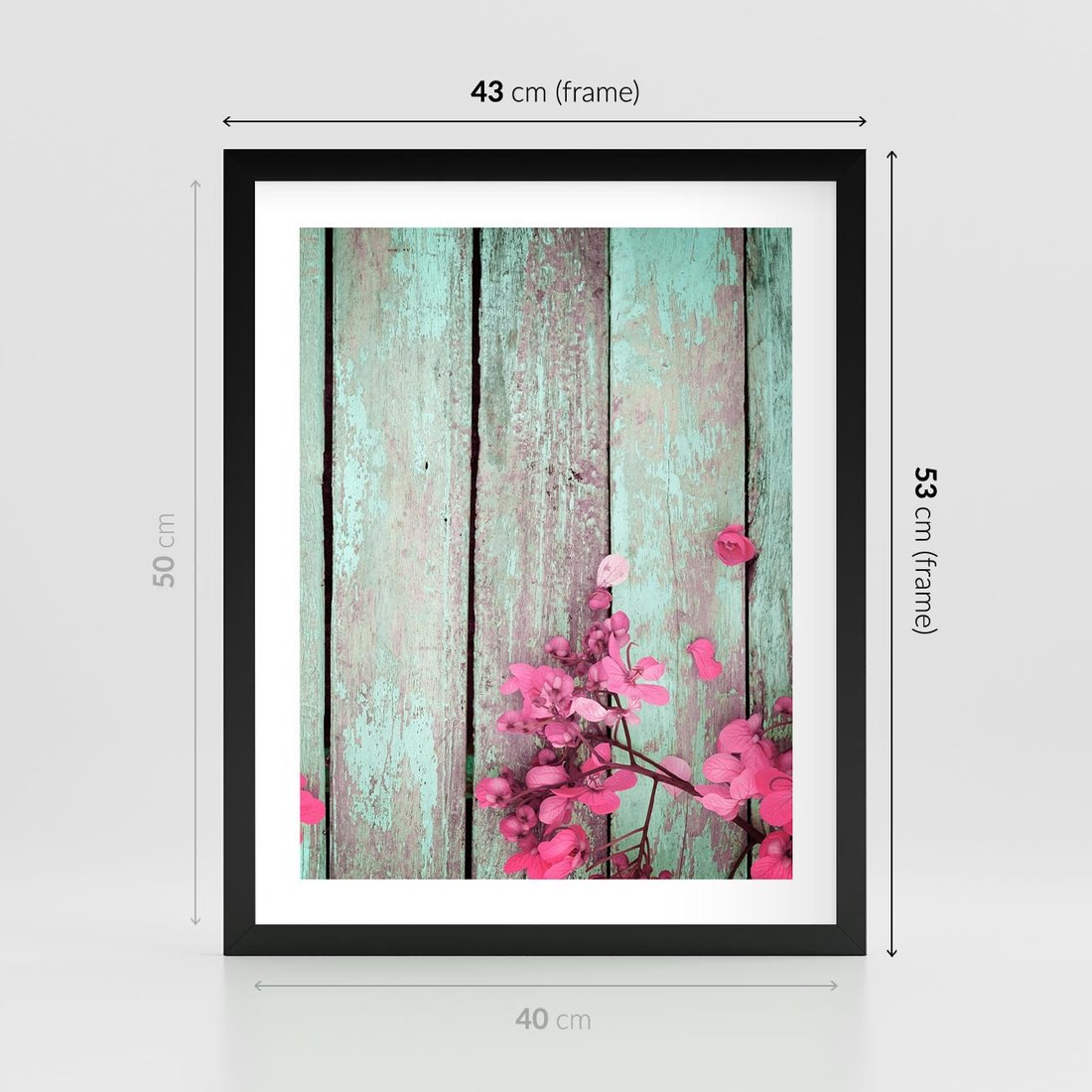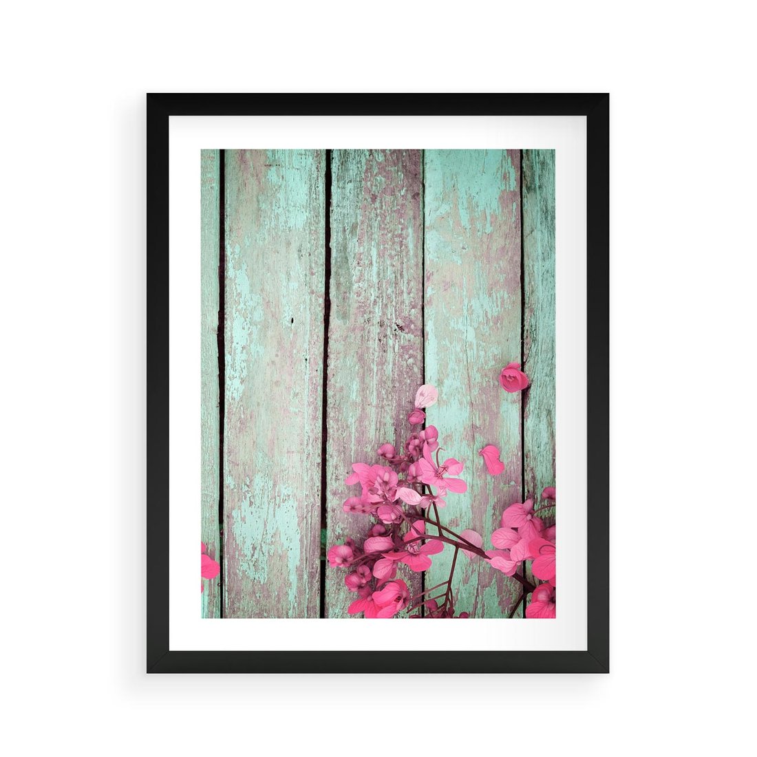 Plakat w ramie 40x50 - Urok Dawnych Czasów - kwiaty, deski - rama czarna