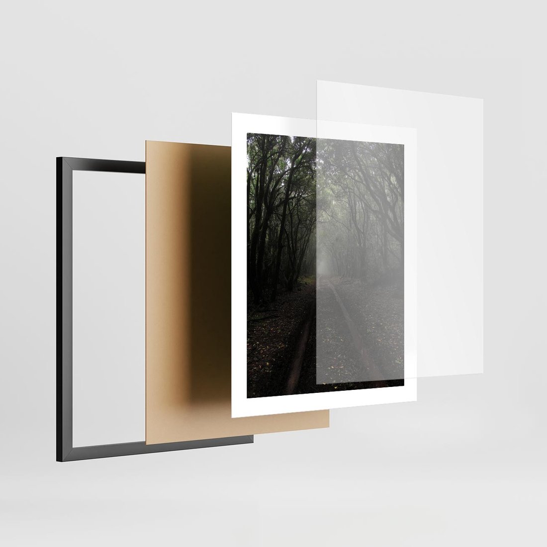Plakat w ramie 40x50 - Urok Drogi - las, droga - rama czarna