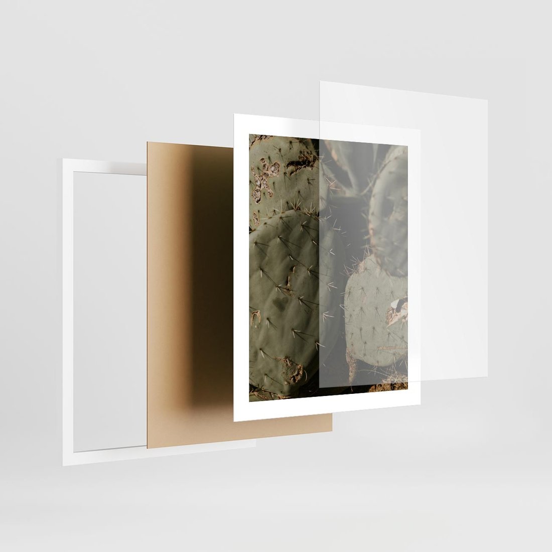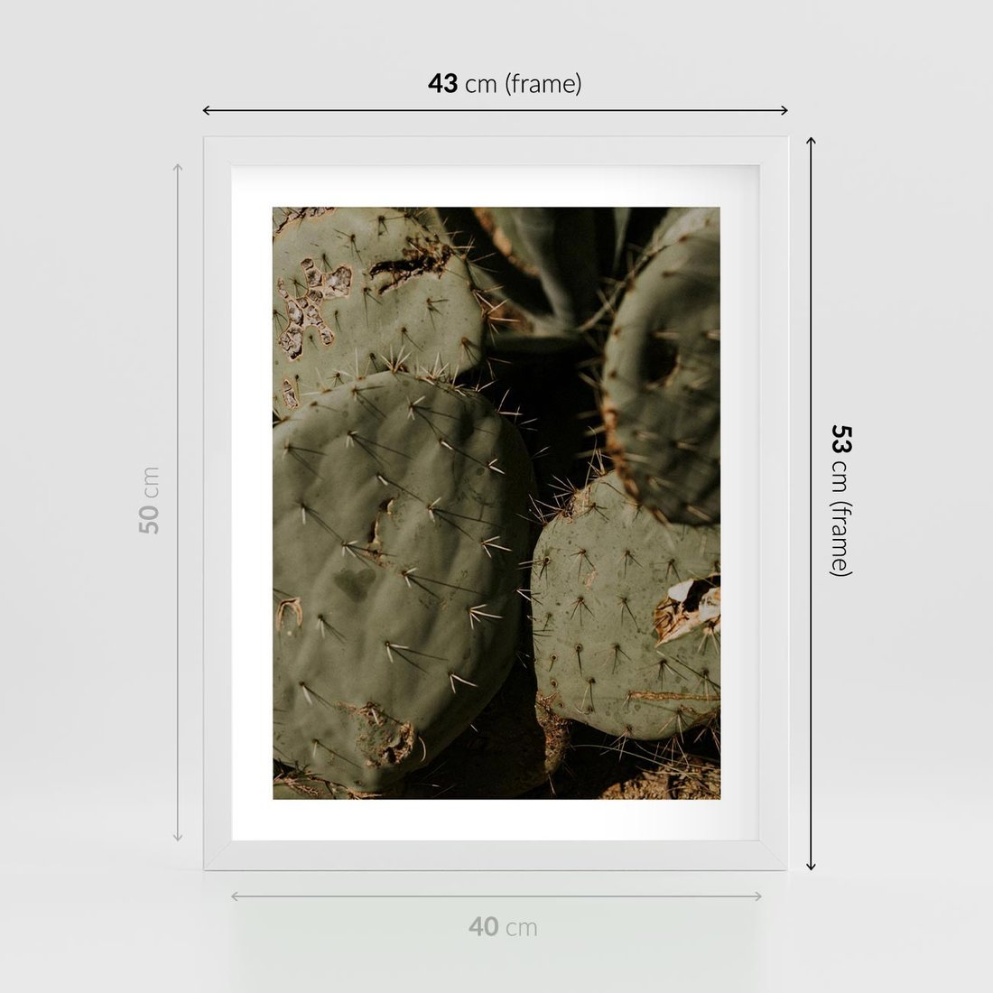 Plakat w ramie 40x50 - Urok Egzotyki - kaktusy, boho - rama biała
