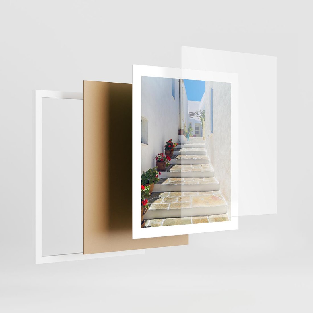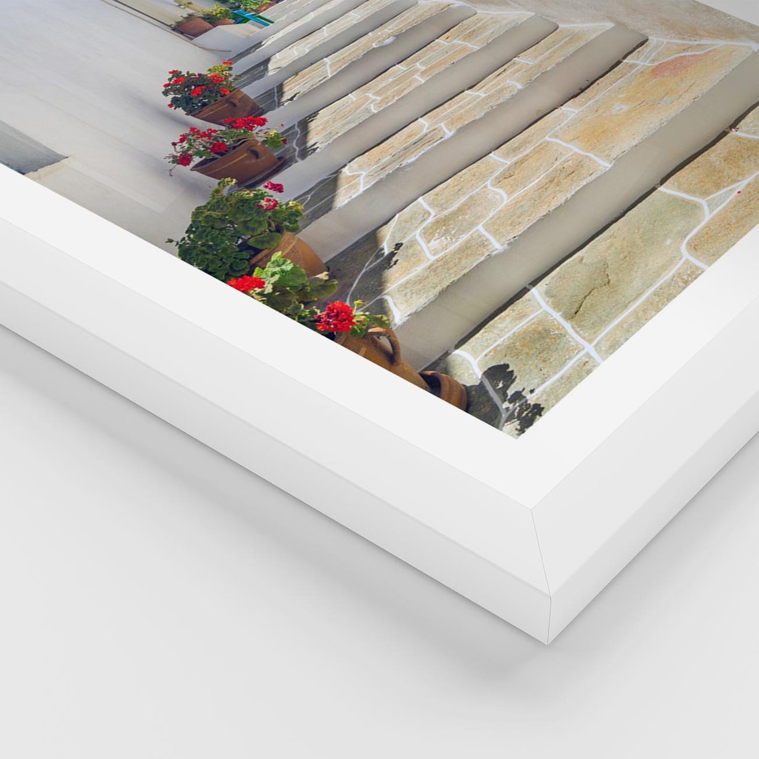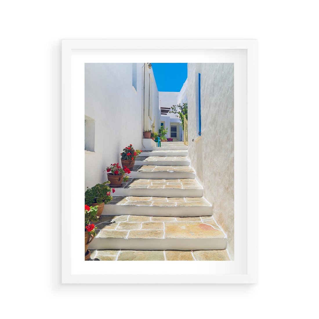 Plakat w ramie 40x50 - Urok Greckiej Uliczki - grecka, uliczka - rama biała