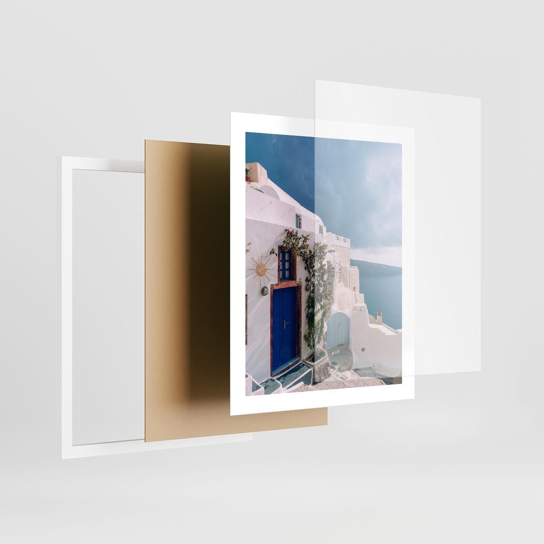 Plakat w ramie 40x50 - Urok Greckiej Wyspy - Santorini, Grecja - rama biała