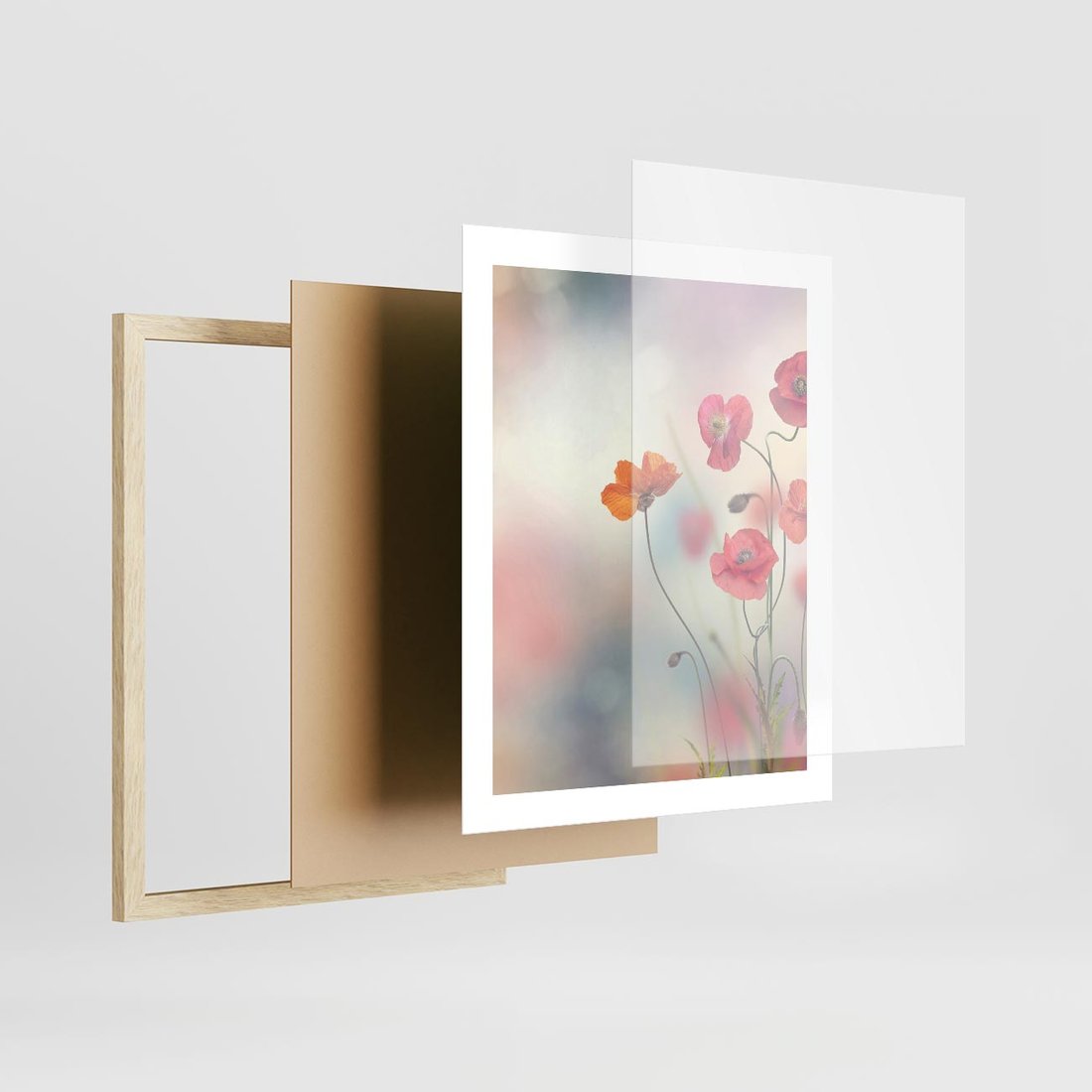 Plakat w ramie 40x50 - Urok natury - kwiaty, akwarela - rama drewno