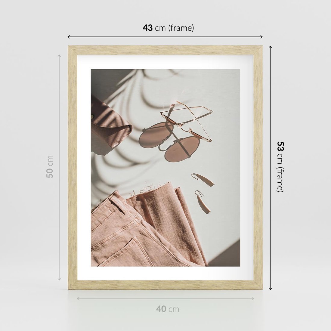 Plakat w ramie 40x50 - Urok Pudrowego Różu - zdjęcie, moda - rama drewno