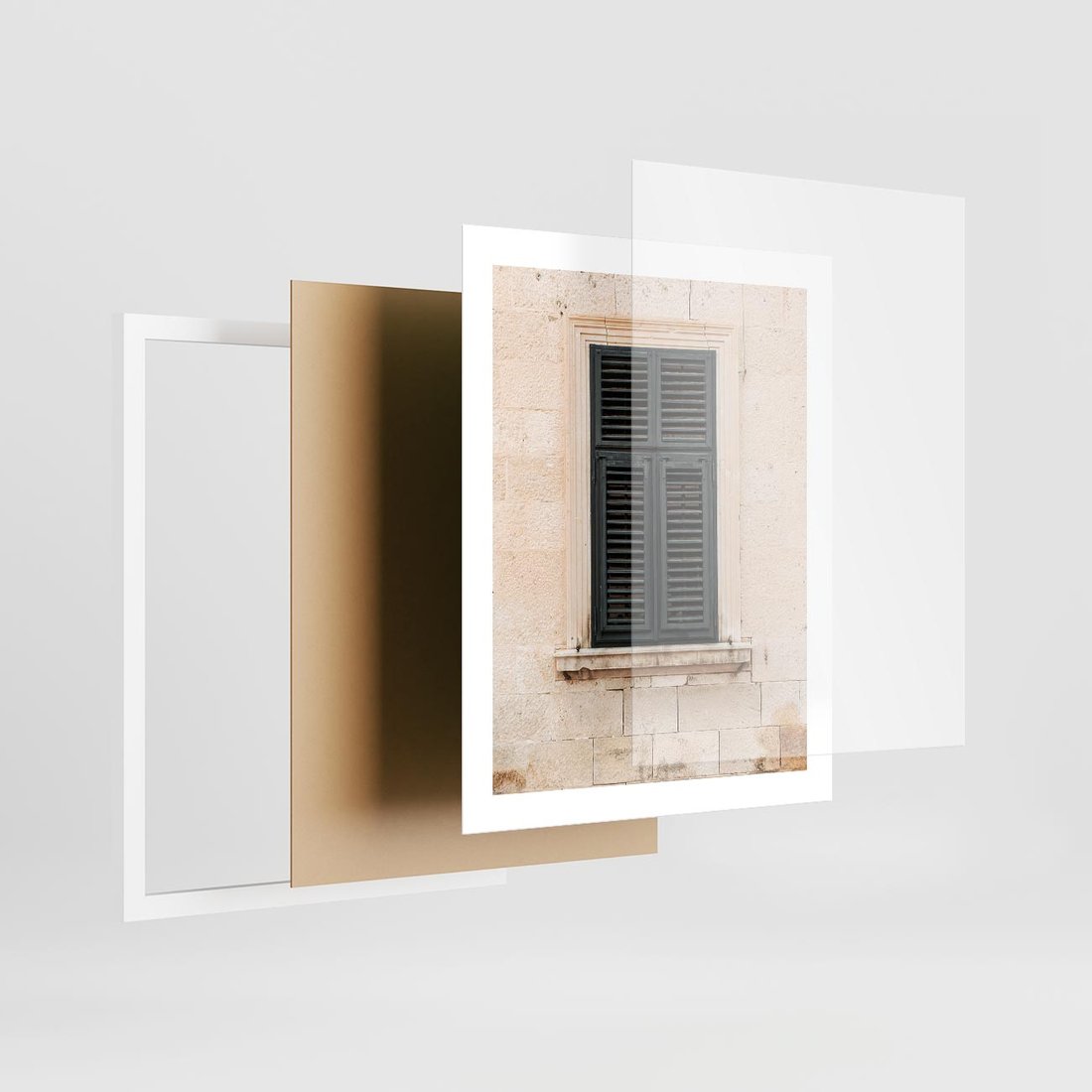 - Plakat w ramie 40x50 - Urok Starego Okna z Zielonymi Okiennicami