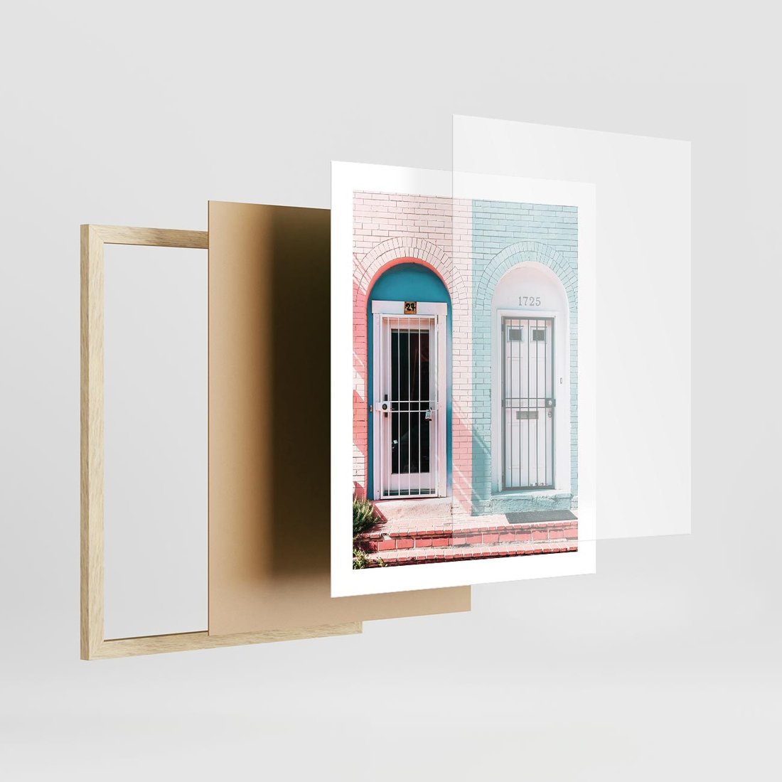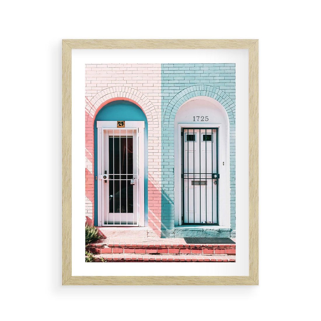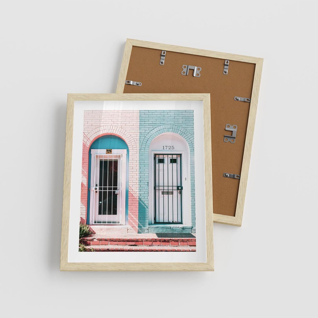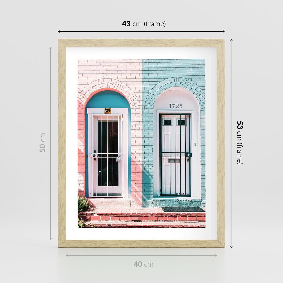 Plakat w ramie 40x50 - Urok Starych Drzwi - stare retro drzwi kamienicy, pastelowe kolory - rama drewno