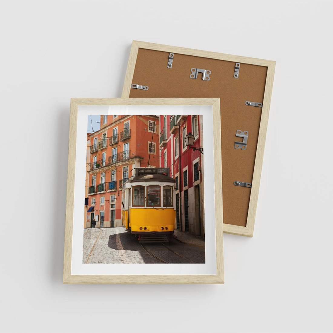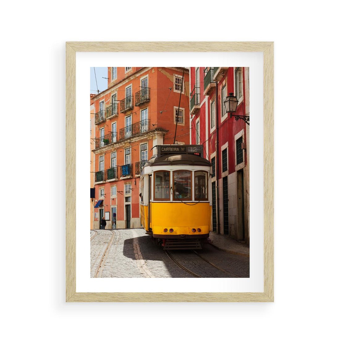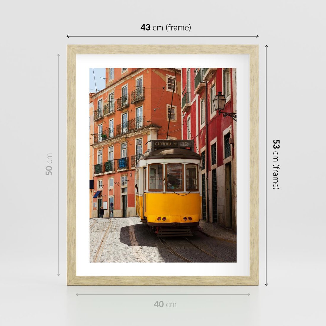 Plakat w ramie 40x50 - Urok tramwaju w Lizbonie - Lizbona, tramwaj - rama drewno
