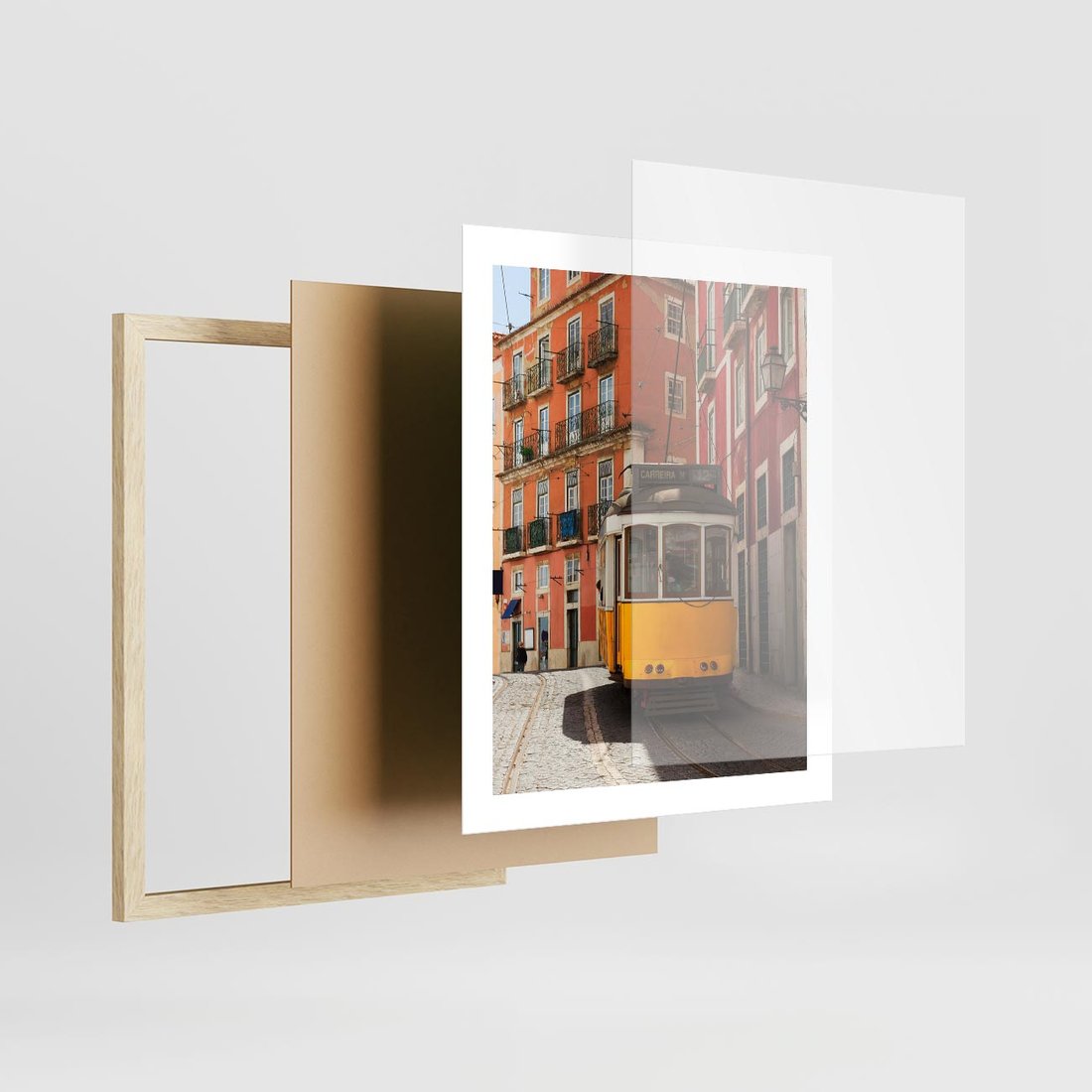 Odkryj urok tramwaju w Lizbonie dzięki temu uroczemu obrazowi. Z kolorowymi fasadami i nostalgicznych nastrojem, ożywia przestrzeń. Ta kompozycja dodaje miejskiego charakteru i romantyzmu, idealna dla miłośników portugalskiego uroku i unikalnych środków transportu.