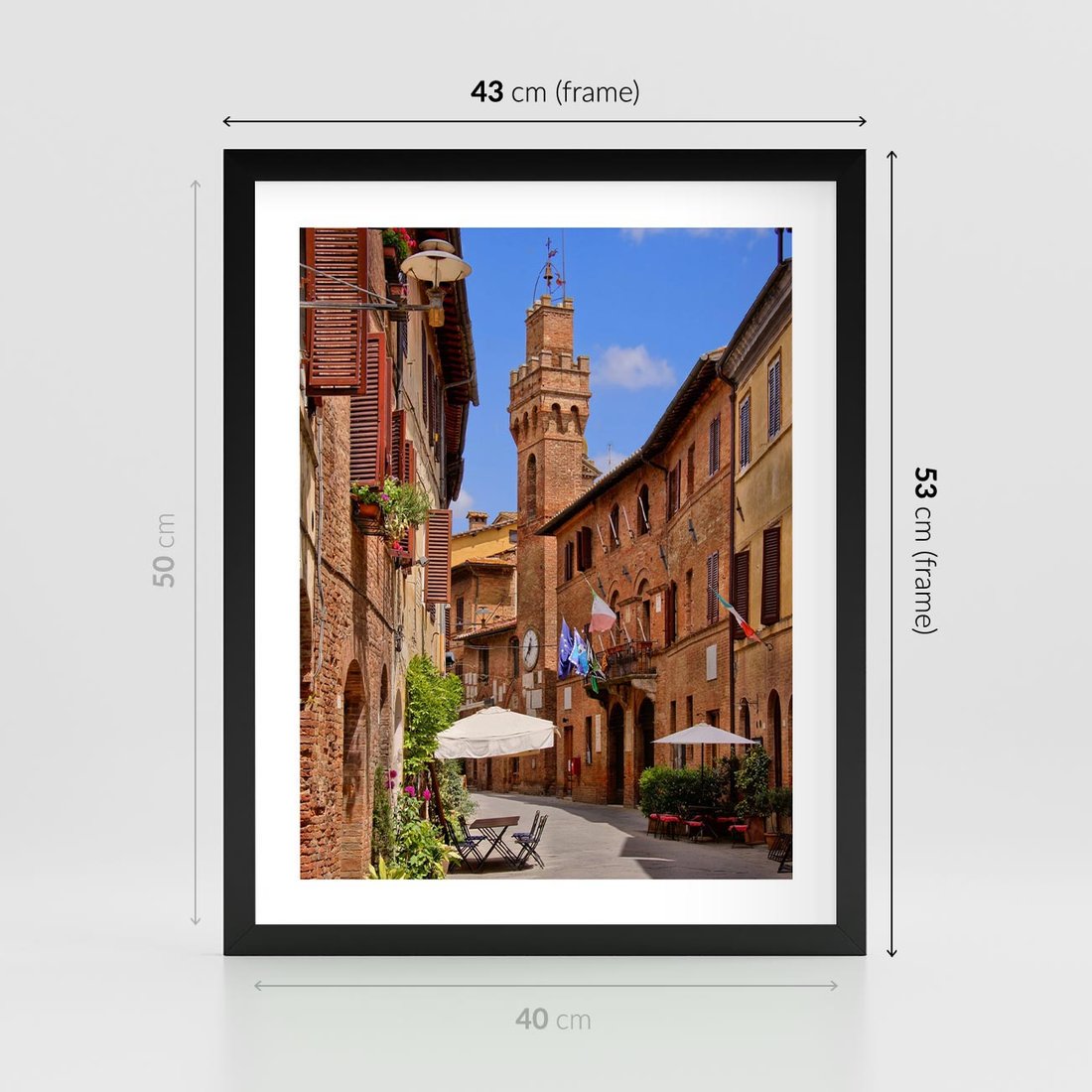 Plakat w ramie 40x50 - Urok włoskich uliczek - włoskie, uliczki - rama czarna