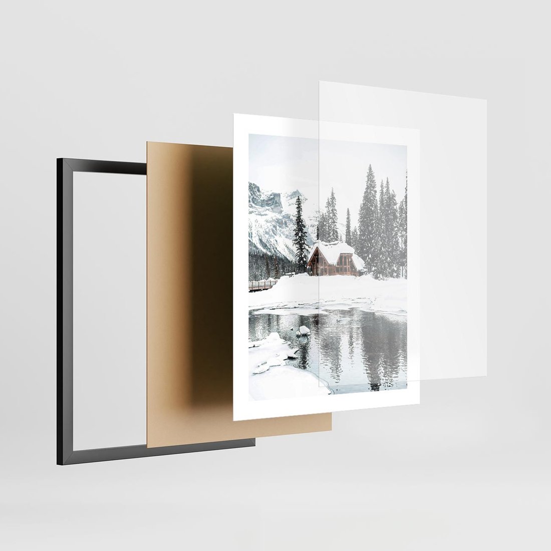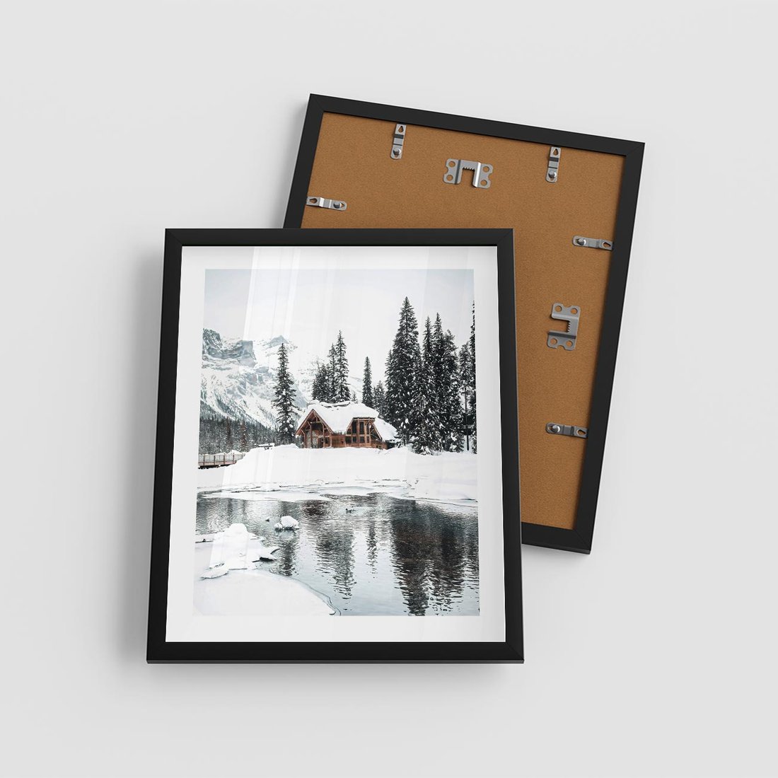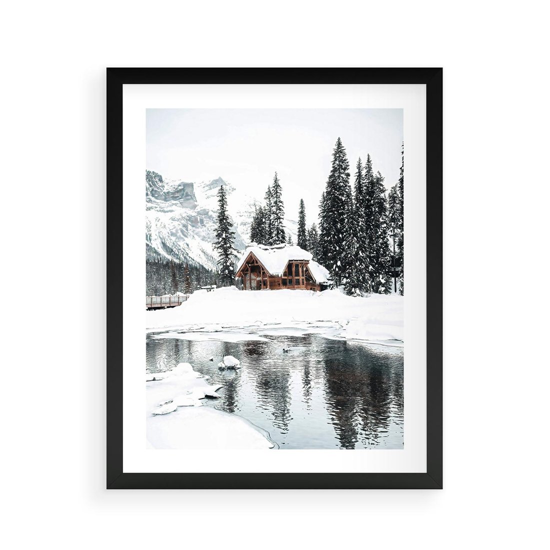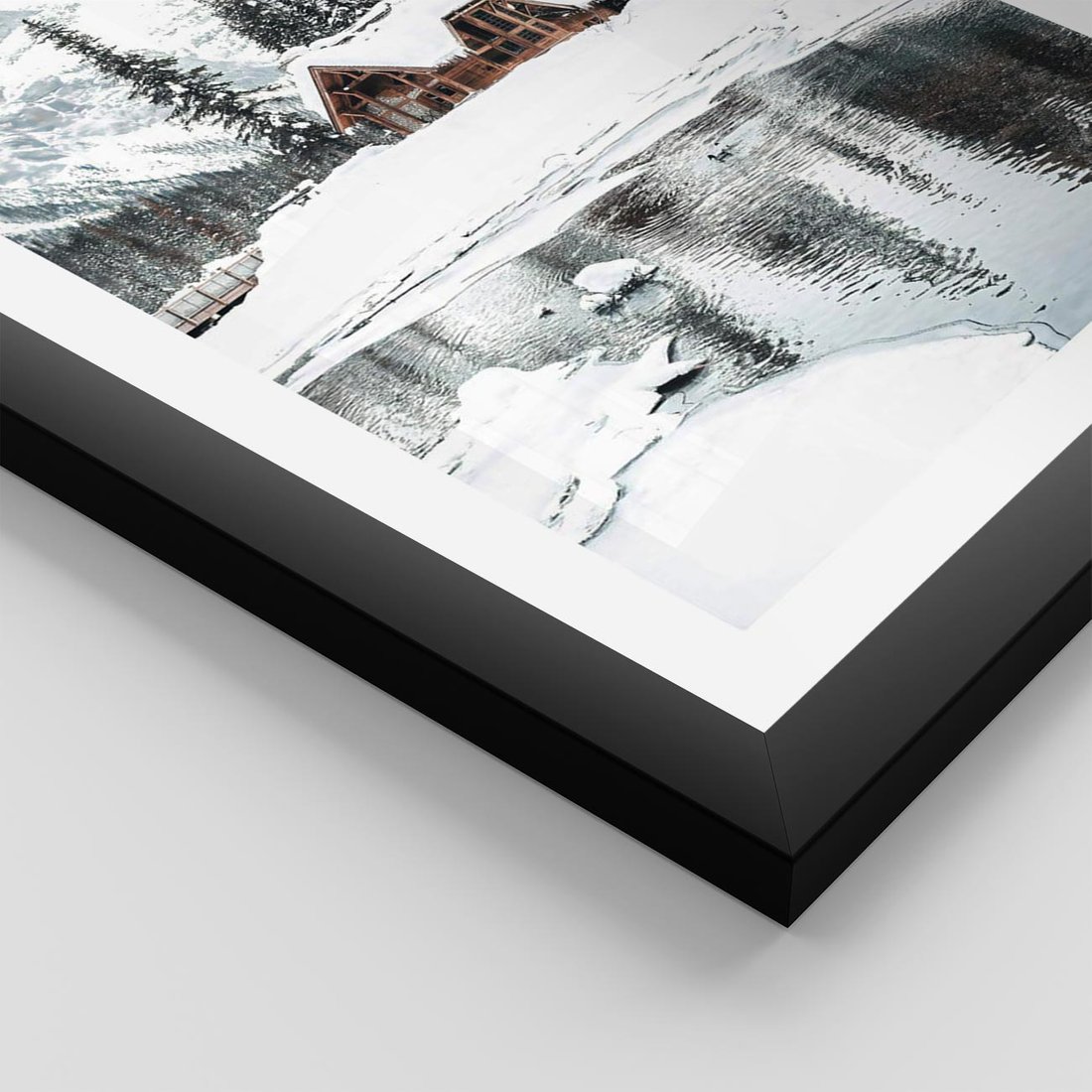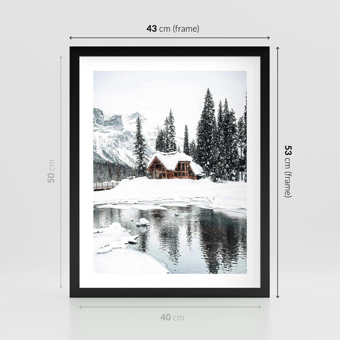 Plakat w ramie 40x50 - Urok Zimowego Krajobrazu - domek w górach, zima - rama czarna