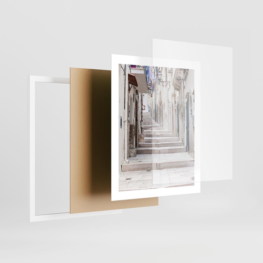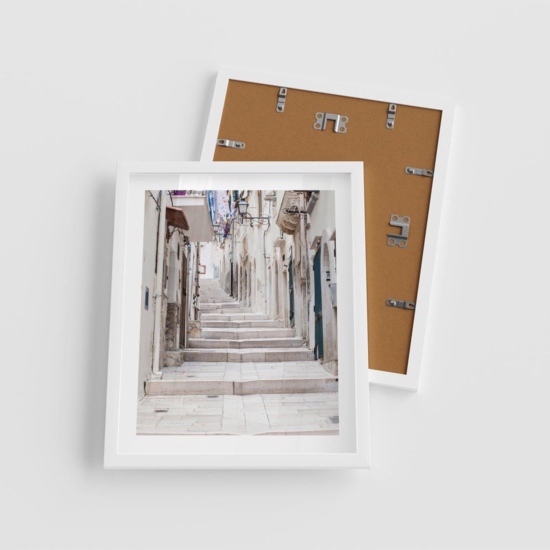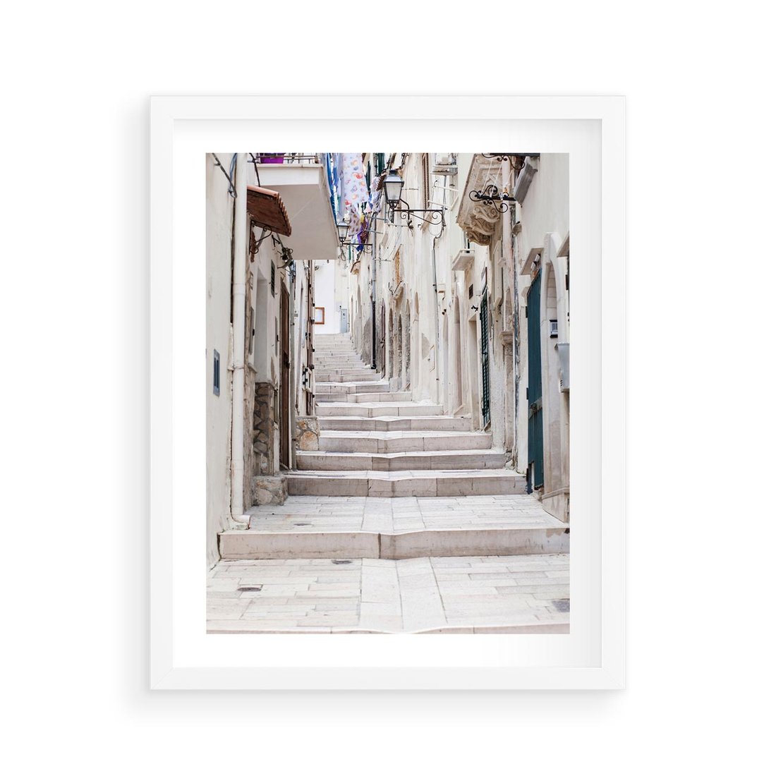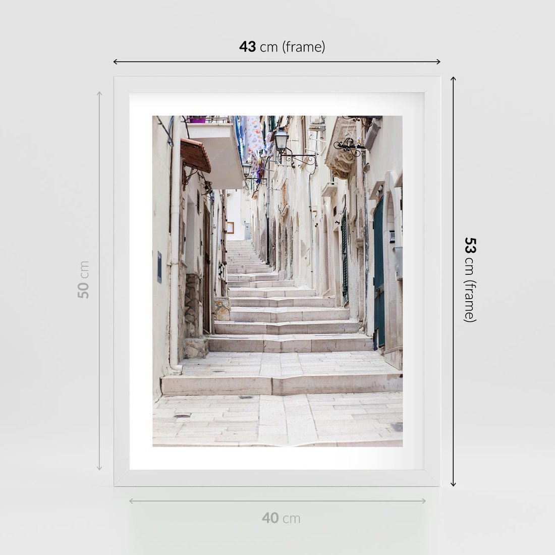 Plakat w ramie 40x50 - Urokliwa uliczka w perspektywie - uliczka, perspektywa - rama biała