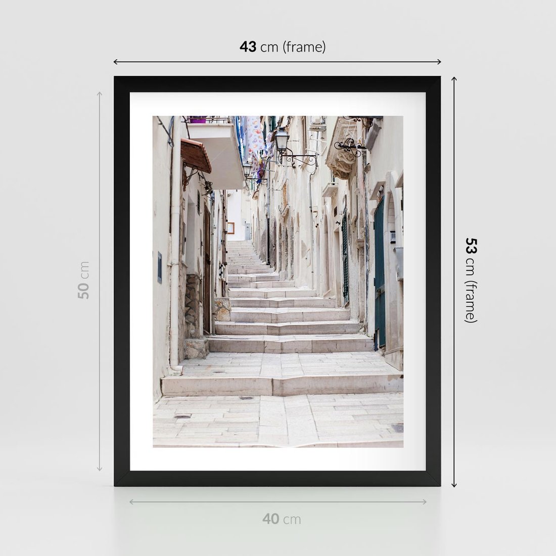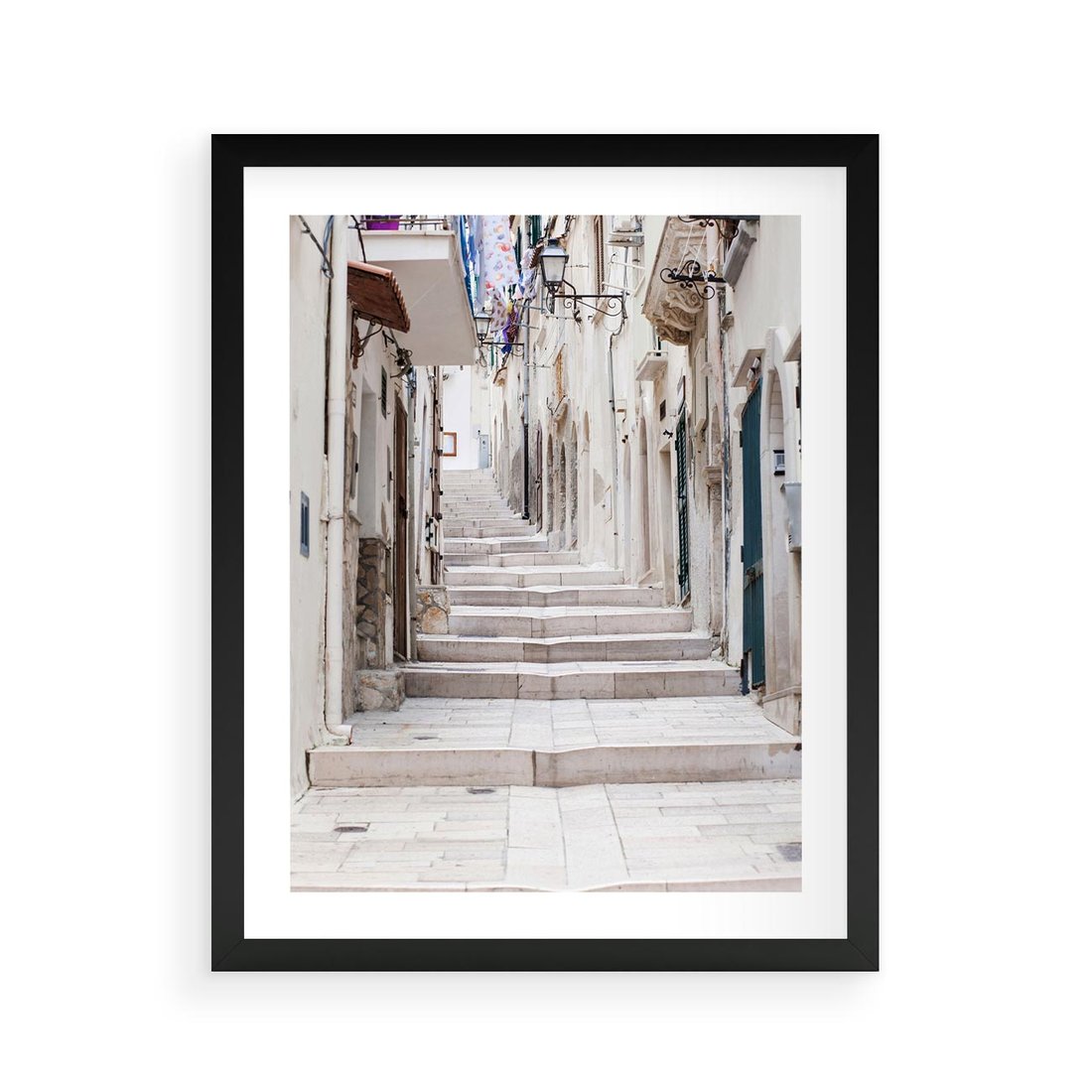Plakat w ramie 40x50 - Urokliwa uliczka w perspektywie - uliczka, perspektywa - rama czarna