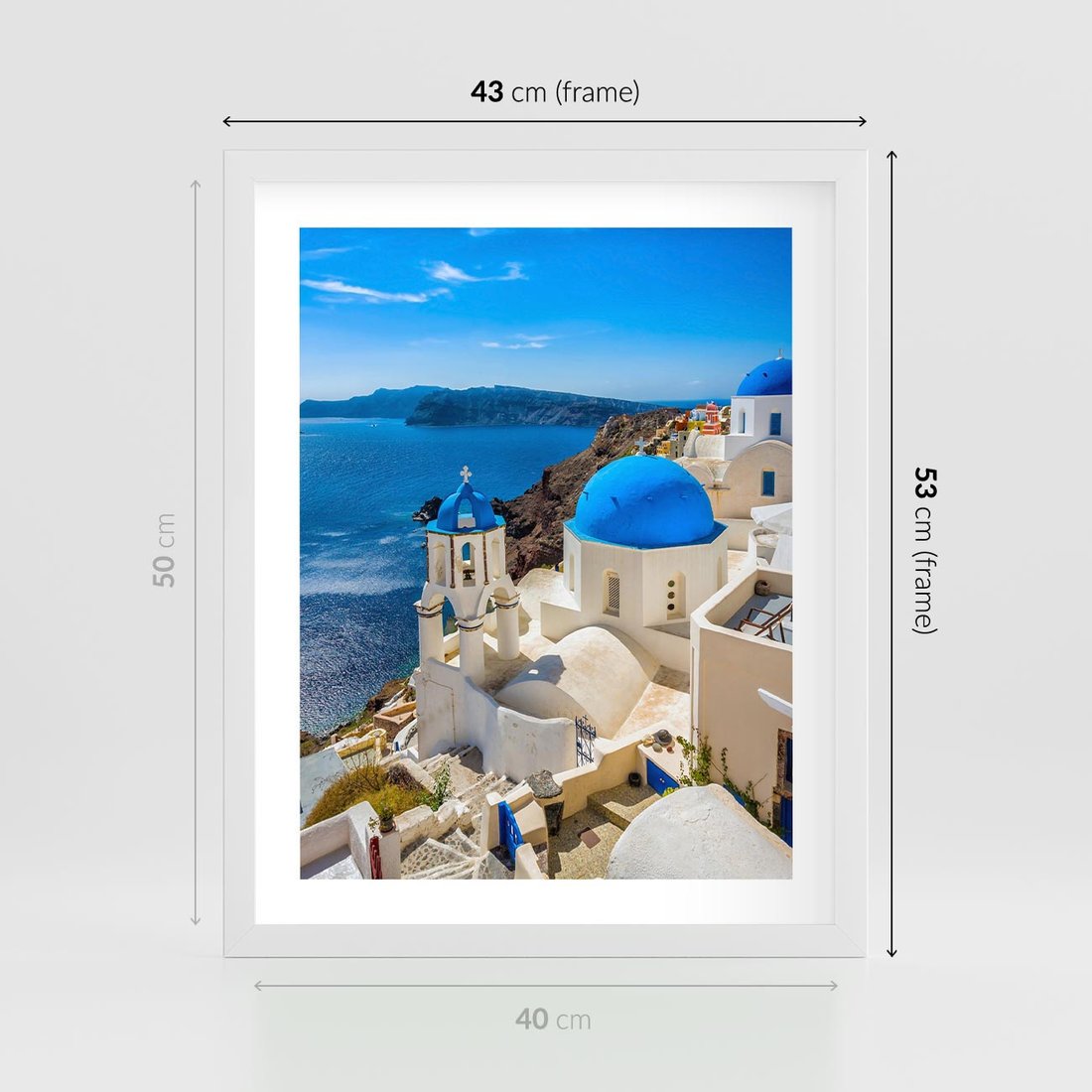 Plakat w ramie 40x50 - Urokliwy widok na Santorini - Santorini, widok - rama biała