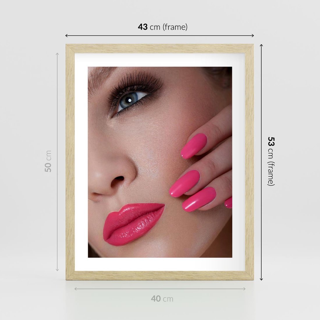 Plakat w ramie 40x50 - Usta, manicure, spa: kobieca harmonia - usta, manicure - rama drewno
