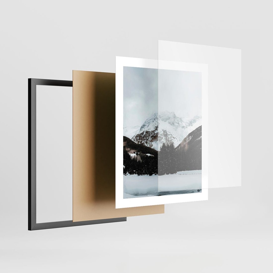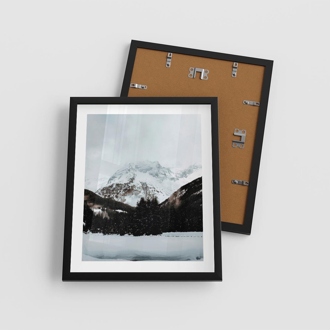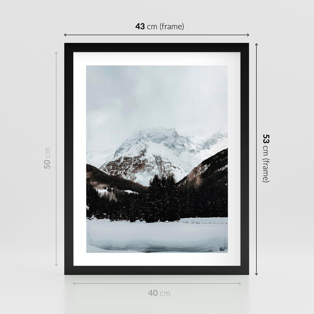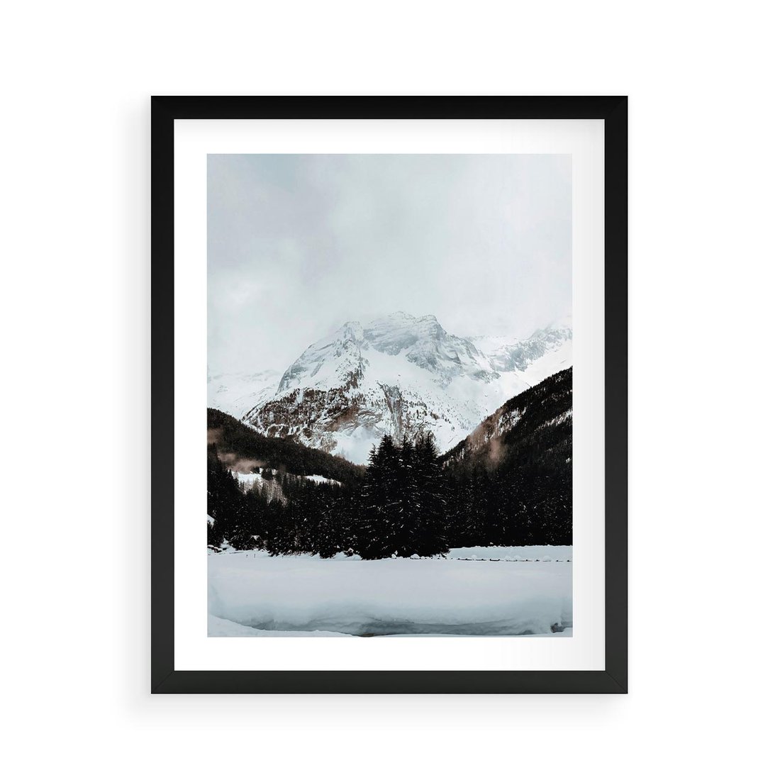 Plakat w ramie 40x50 - W Cieniu Śnieżnych Szczytów - górski krajobraz, zima - rama czarna