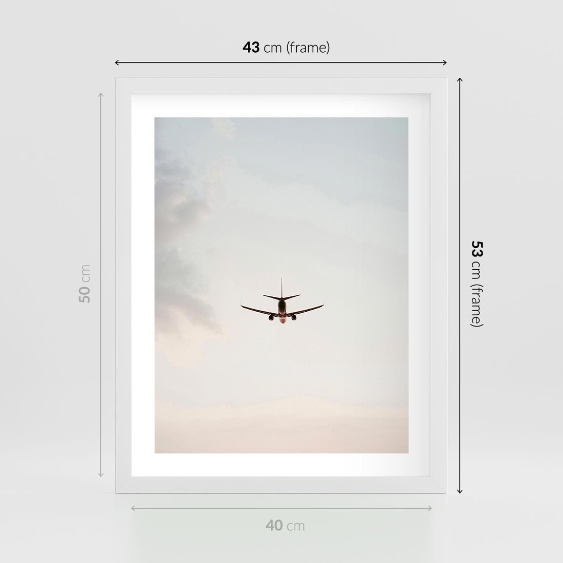 Plakat w ramie 40x50 - W Powietrzu: Samolot na Niebie - samolot w przestworzach, samolot na niebie - rama biała