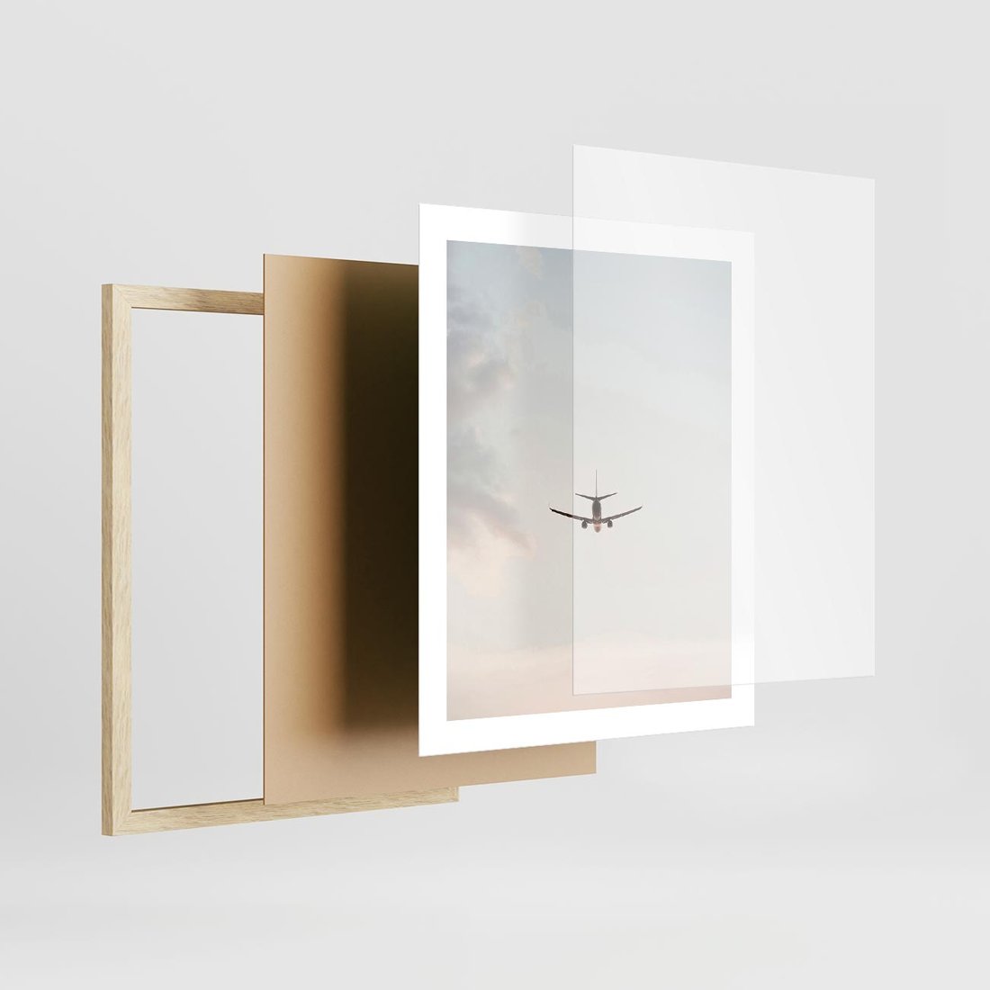 Plakat w ramie 40x50 - W Powietrzu: Samolot na Niebie - samolot w przestworzach, samolot na niebie - rama drewno