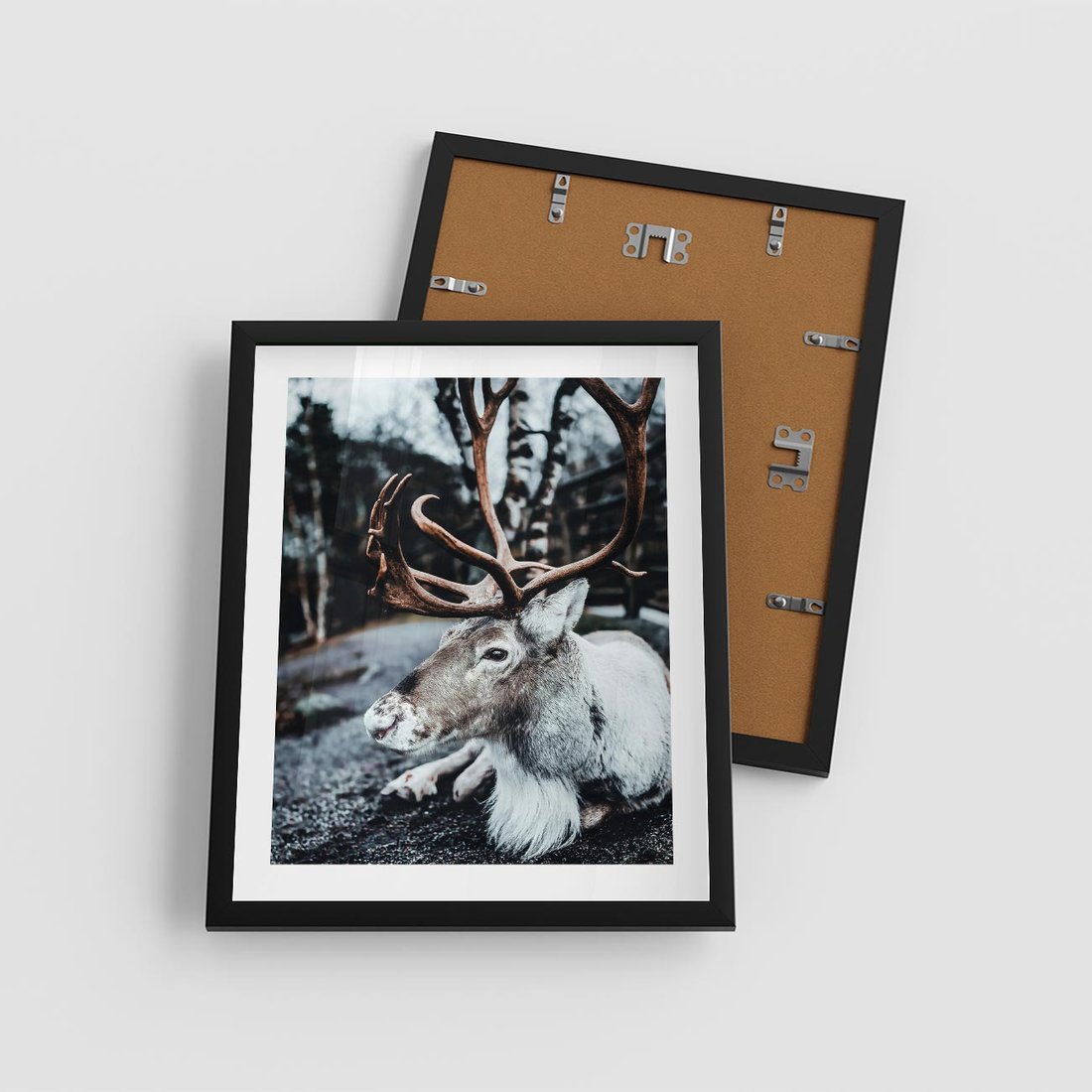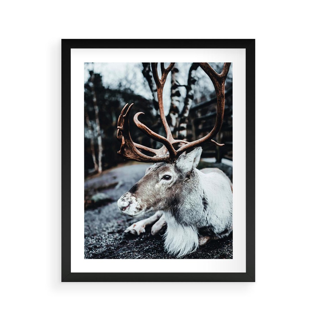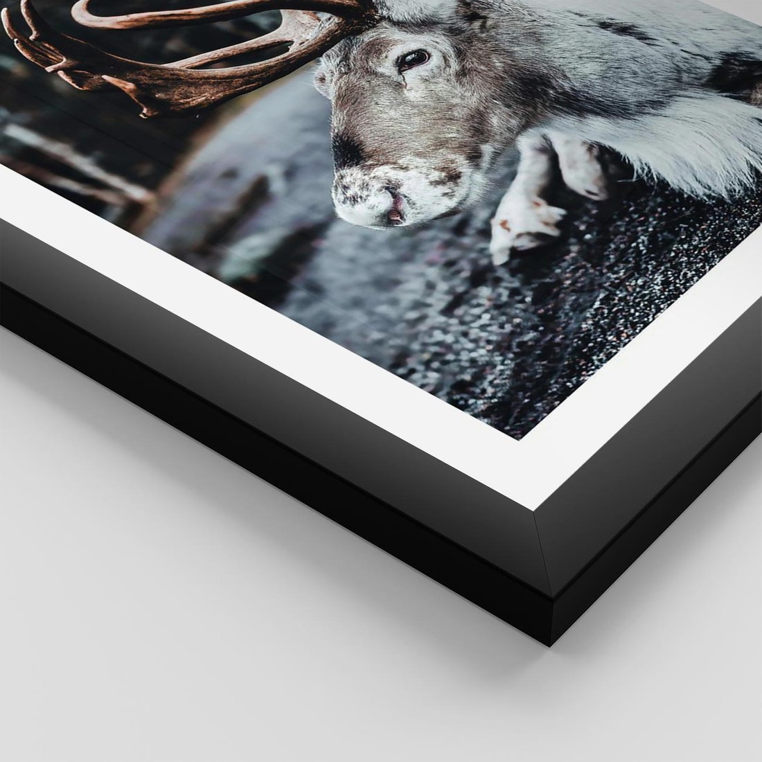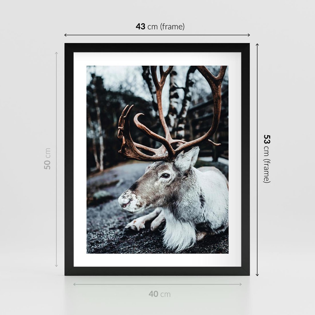 Plakat w ramie 40x50 - W Zimowej Krainie - renifer, zima - rama czarna