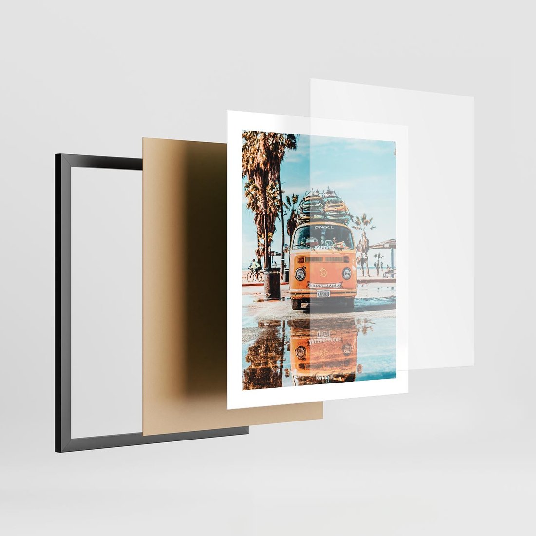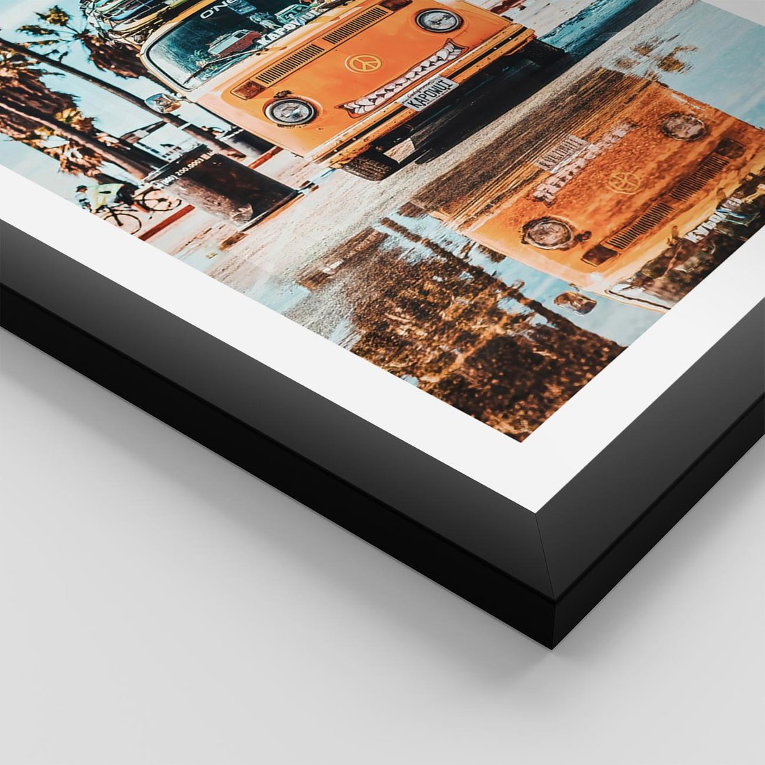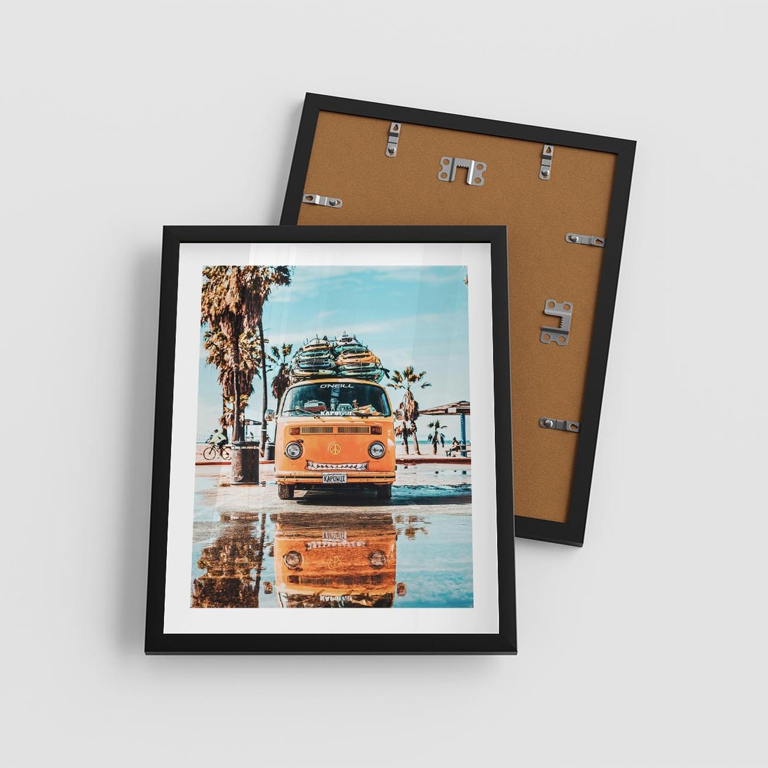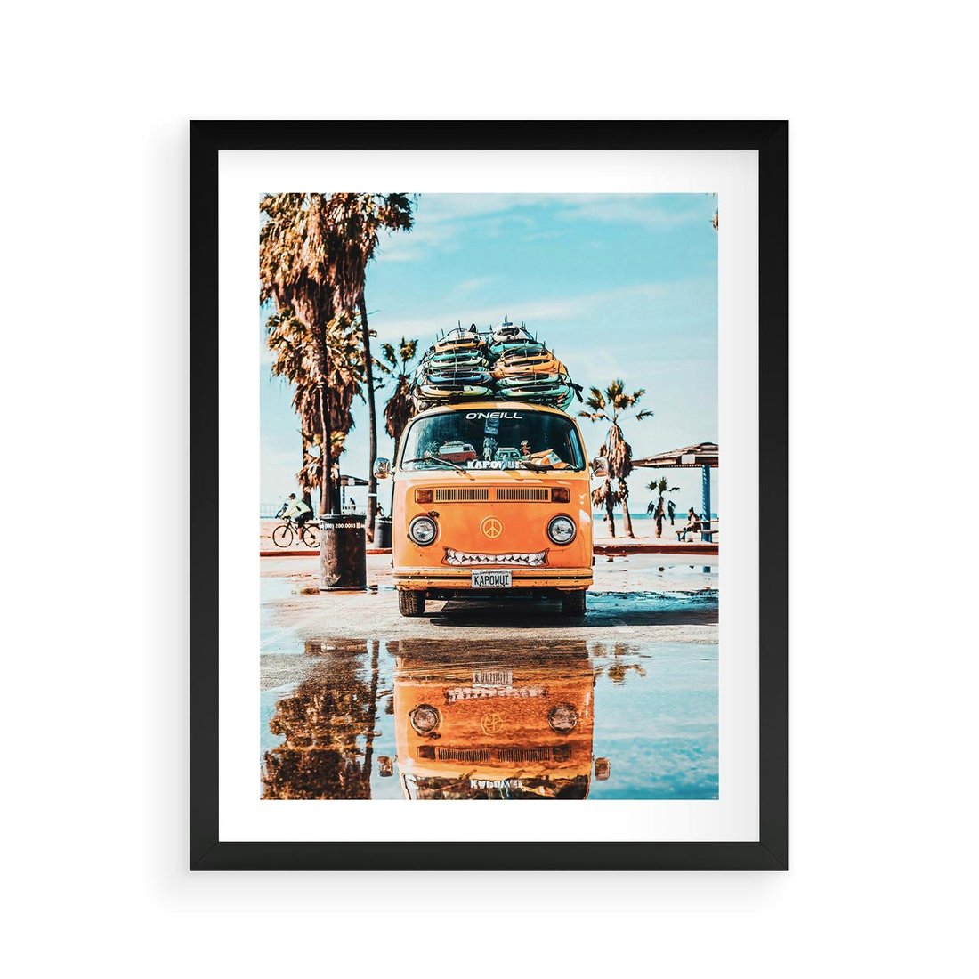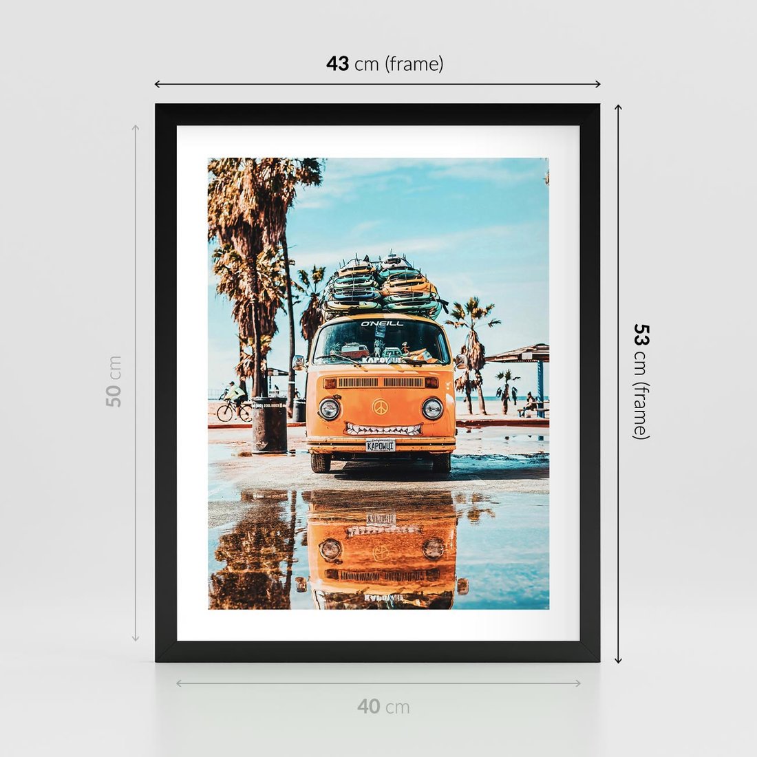 Plakat w ramie 40x50 - Wakacje na Kółkach - kamper, deski surfingowe na dachu - rama czarna