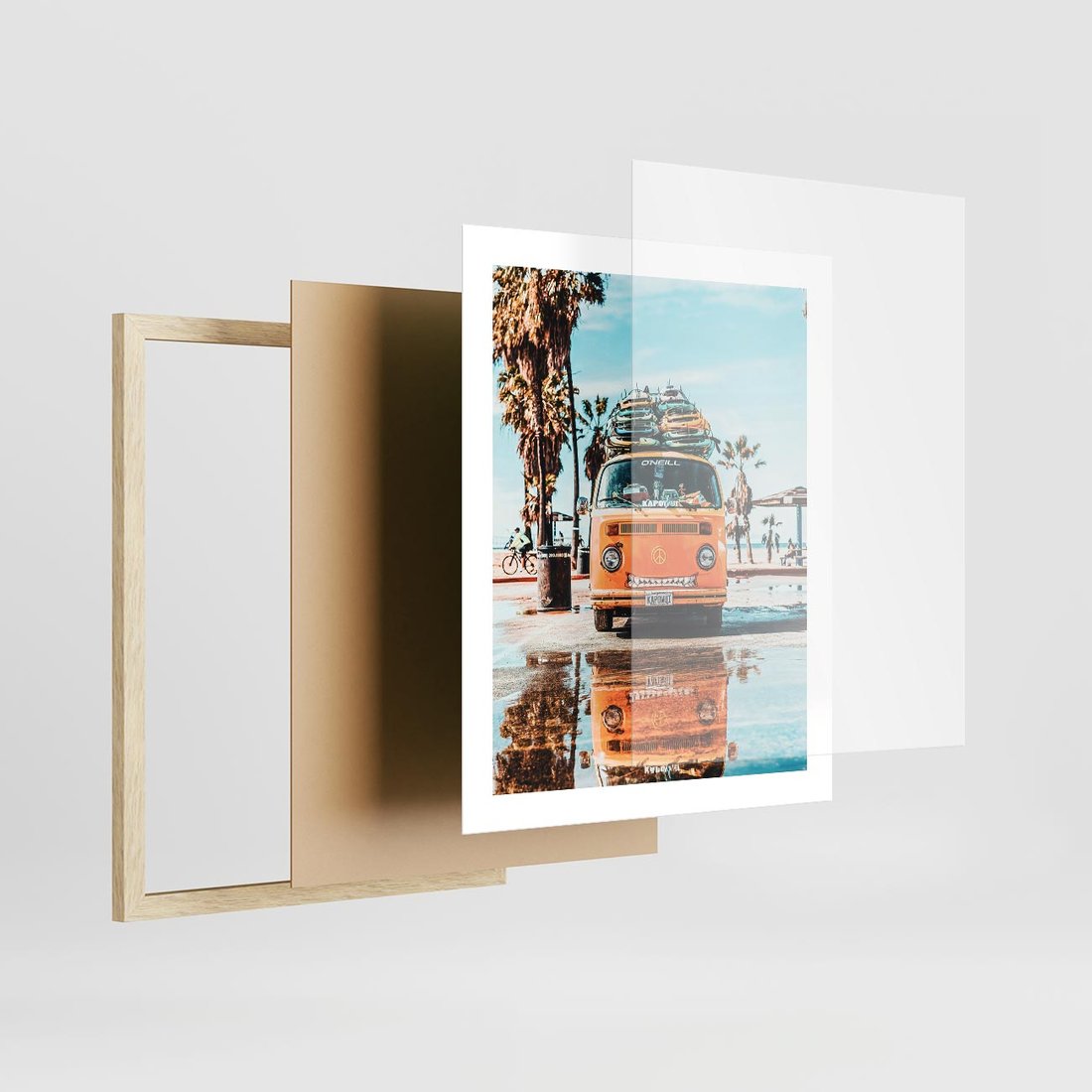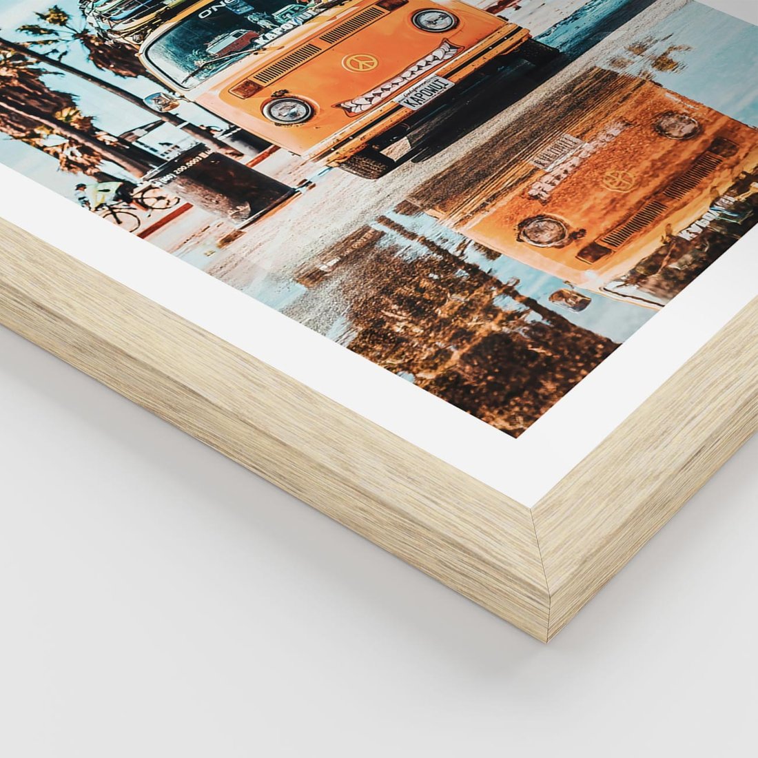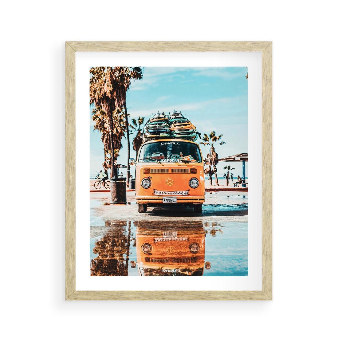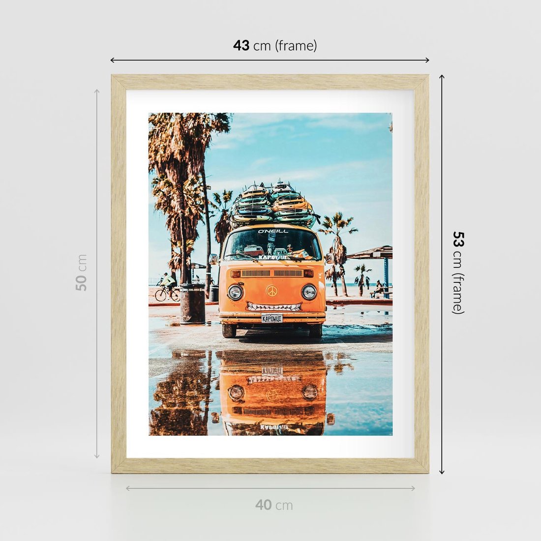 Plakat w ramie 40x50 - Wakacje na Kółkach - kamper, deski surfingowe na dachu - rama drewno