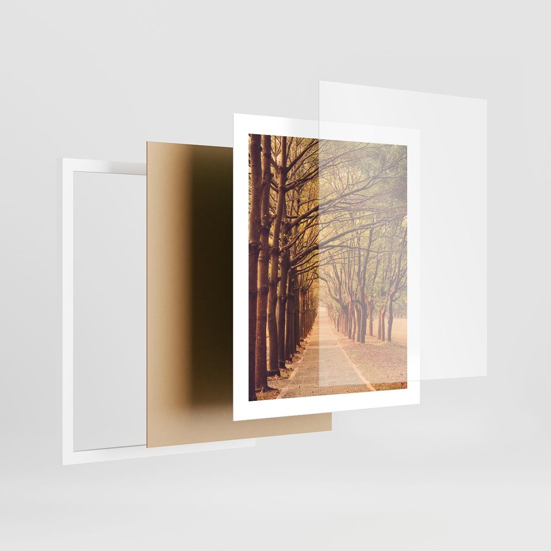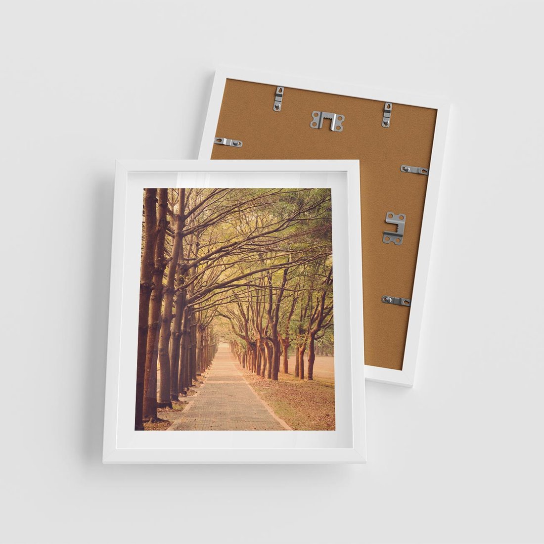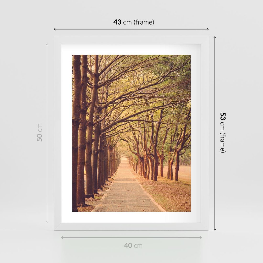 Plakat w ramie 40x50 - Wędrówka między drzewami - droga, drzewa - rama biała