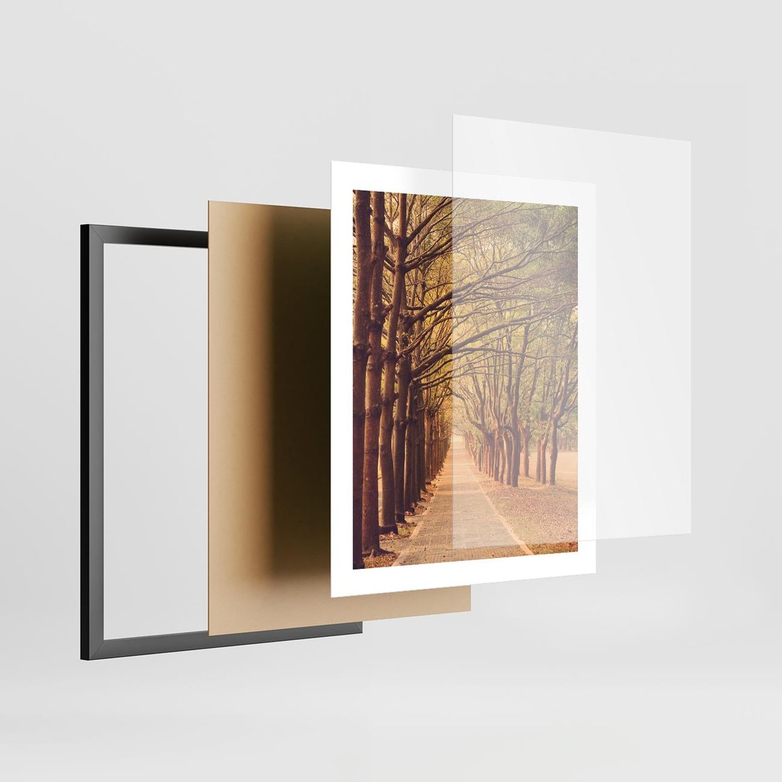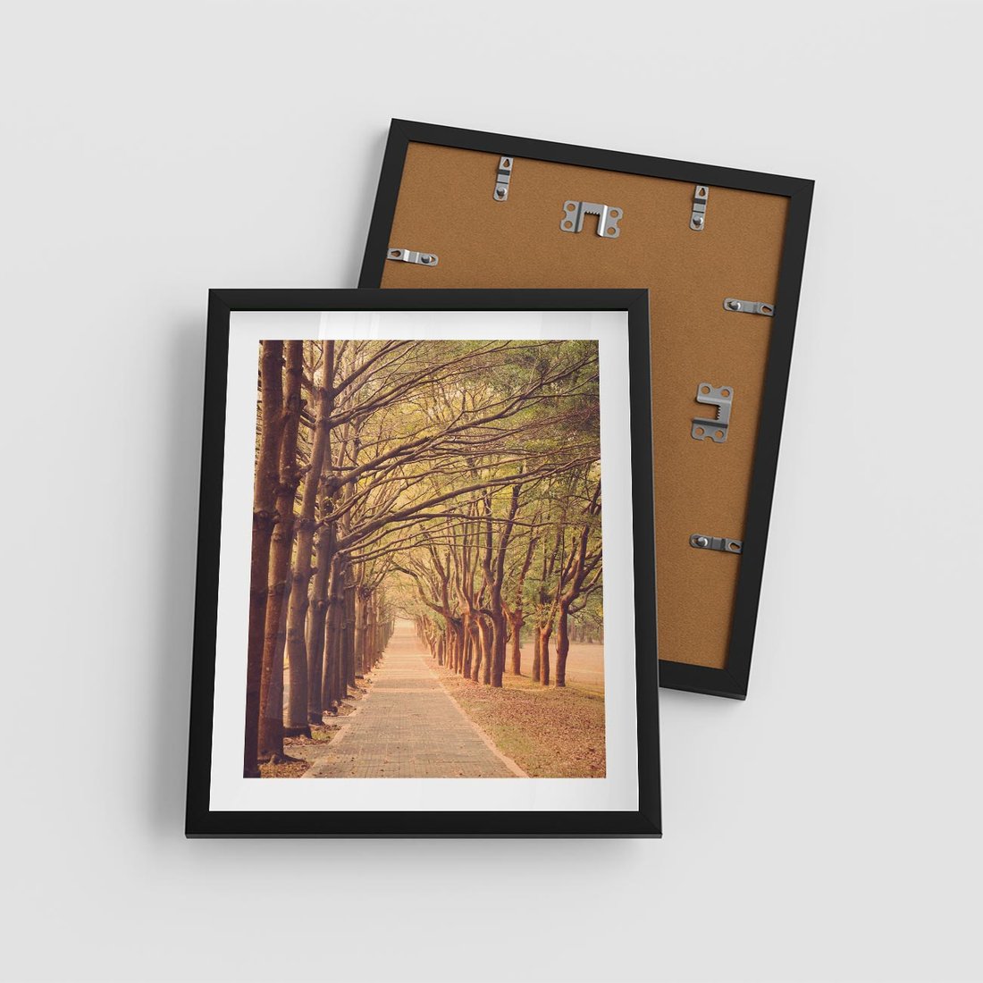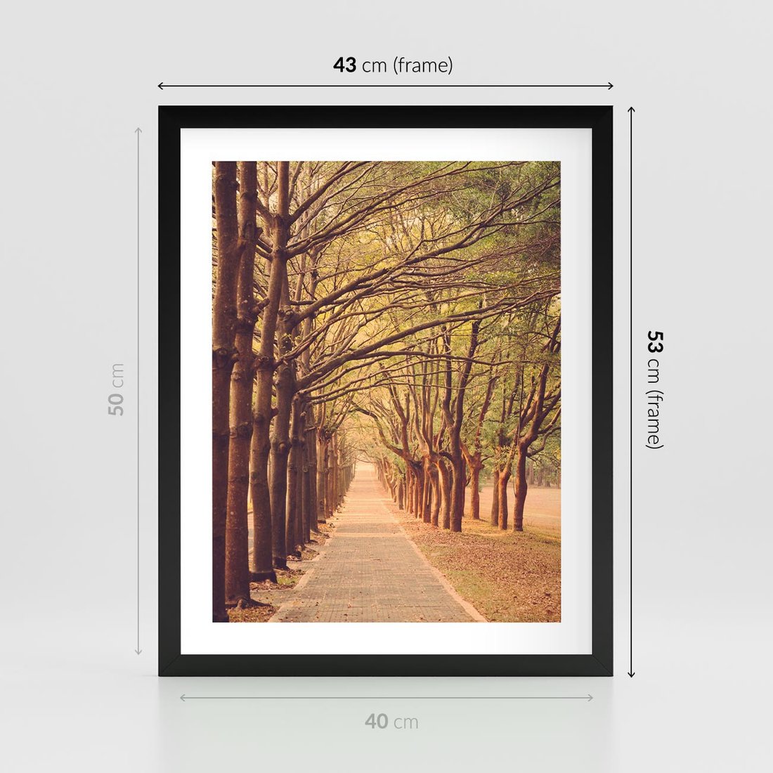 Plakat w ramie 40x50 - Wędrówka między drzewami - droga, drzewa - rama czarna