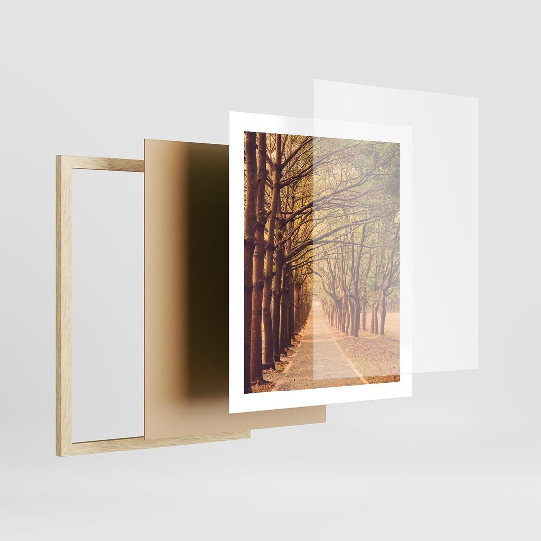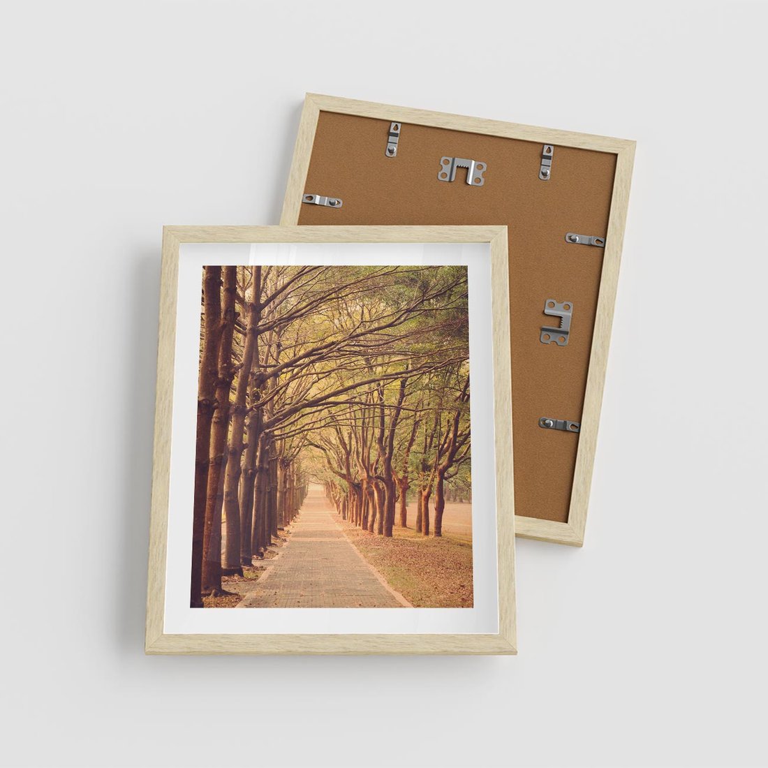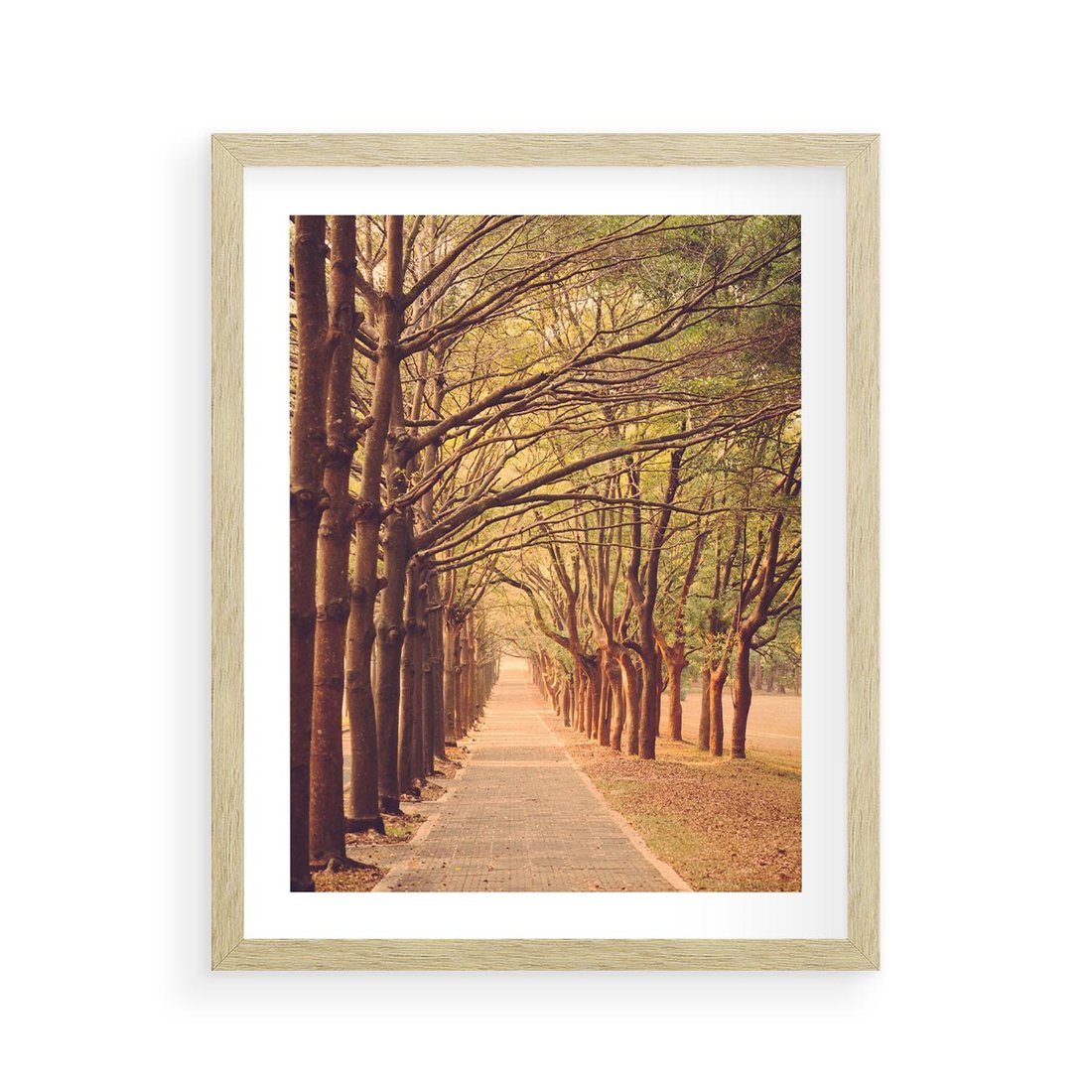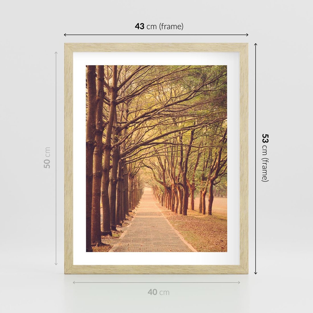 Plakat w ramie 40x50 - Wędrówka między drzewami - droga, drzewa - rama drewno