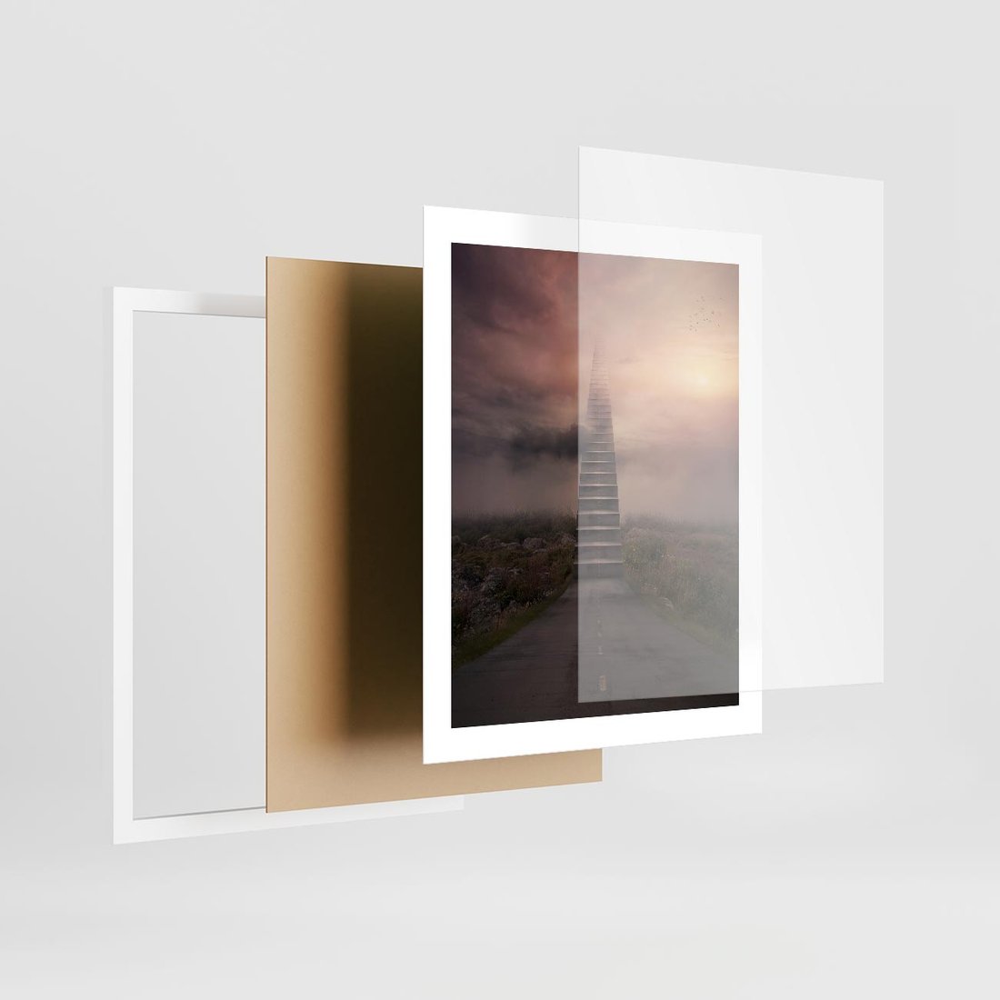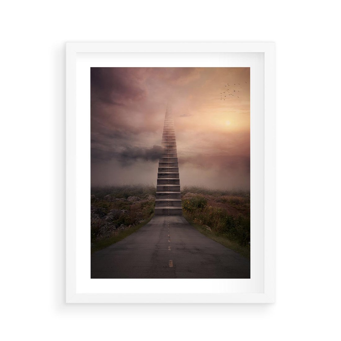 Plakat w ramie 40x50 - Wędrówka po malowniczej drodze - droga, schody - rama biała
