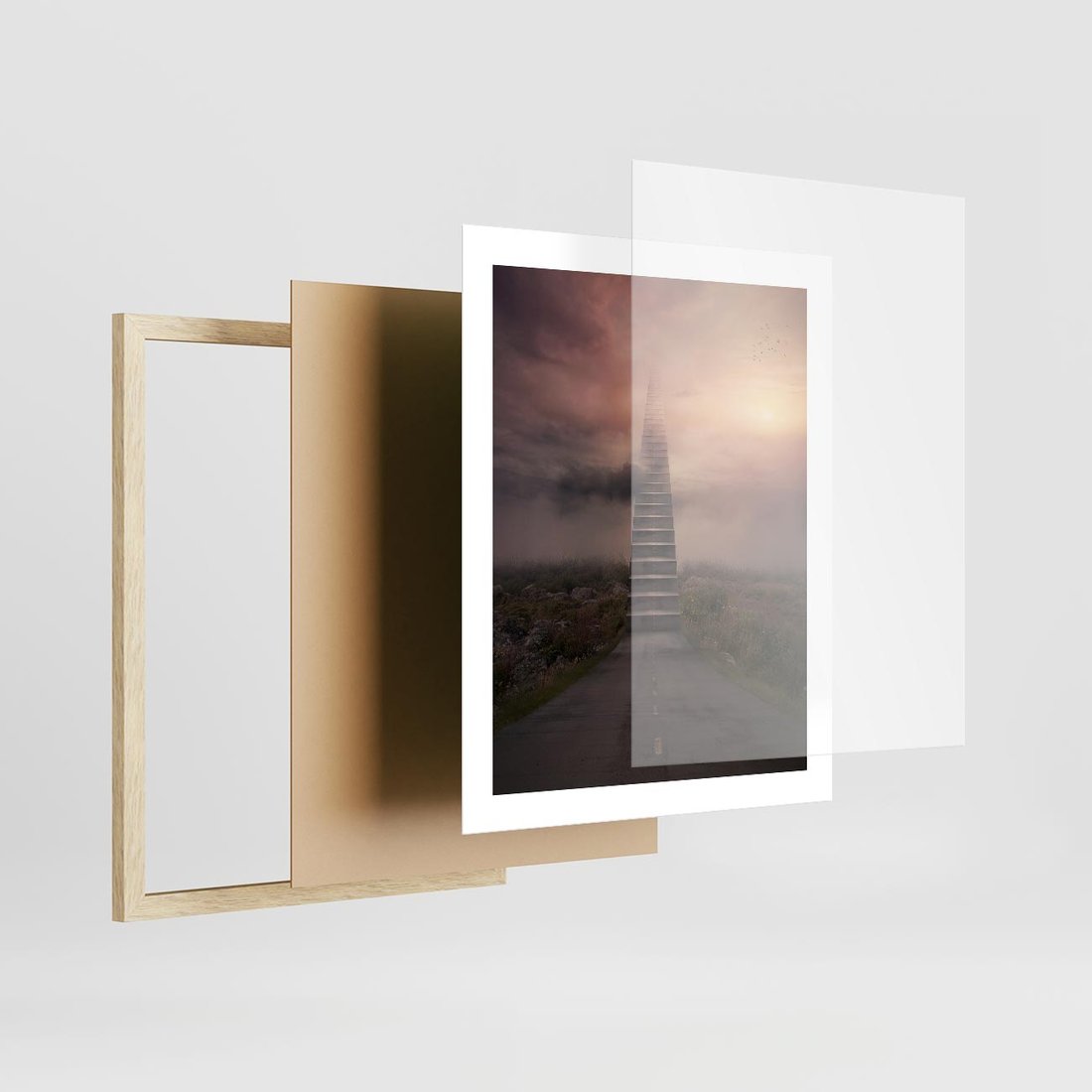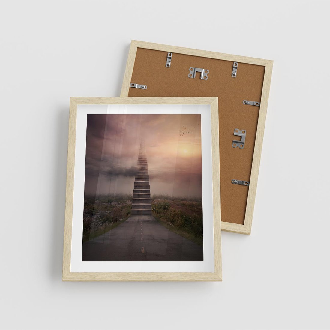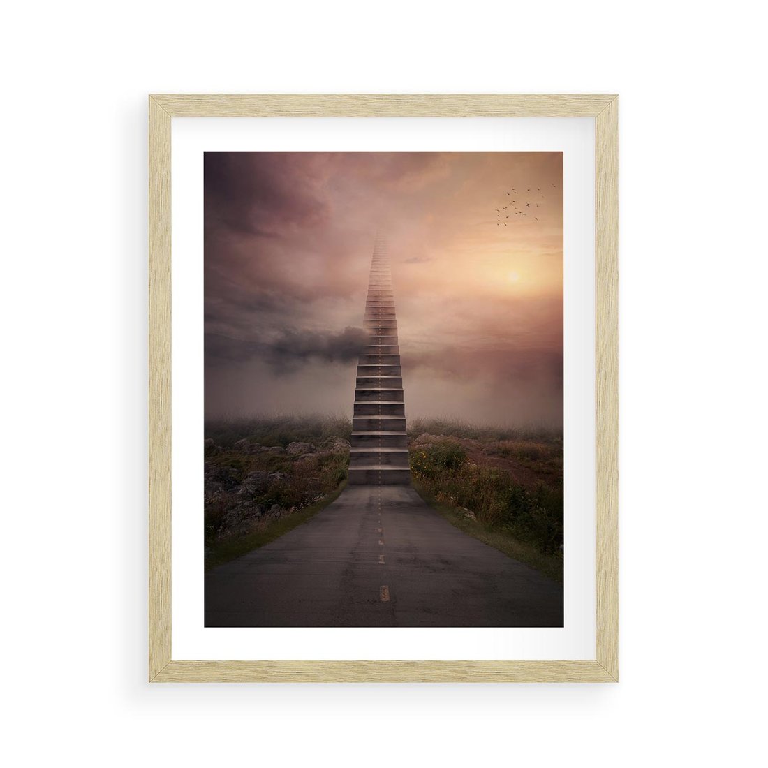 Plakat w ramie 40x50 - Wędrówka po malowniczej drodze - droga, schody - rama drewno