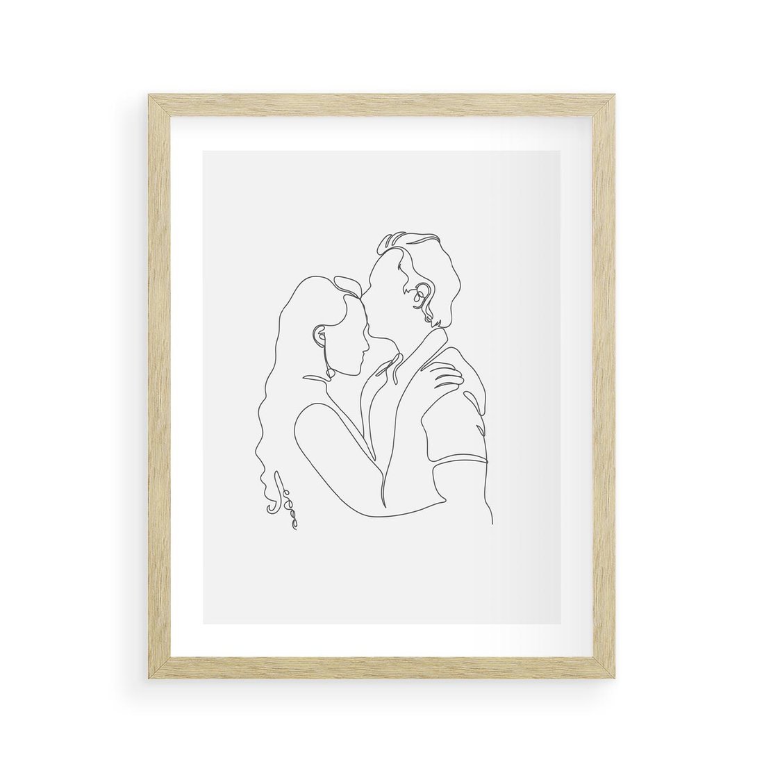 Naszkicowana jedną linią para zakochanych - kobieta i mężczyzna - symbolizuje ich połączenie i bliskość w minimalistyczny sposób.