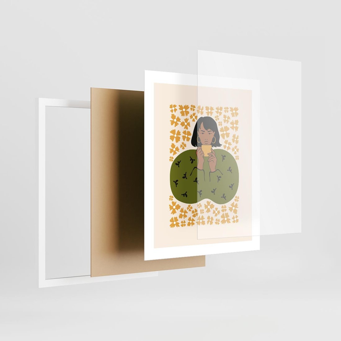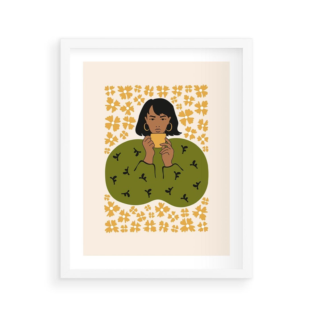 Ten nowoczesny plakat przedstawia minimalistyczną kompozycję kobiety otoczonej delikatnymi kwiatami. Sztuka ta łączy wyrazistość i prostotę, tworząc spokojny i inspirujący obraz, który zaprasza do refleksji i cieszenia się pięknem natury w harmonii z nowoczesnym stylem.