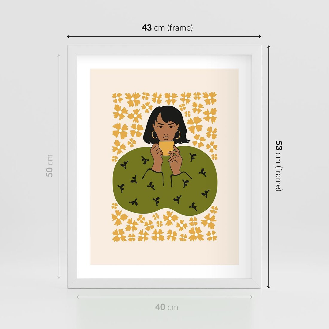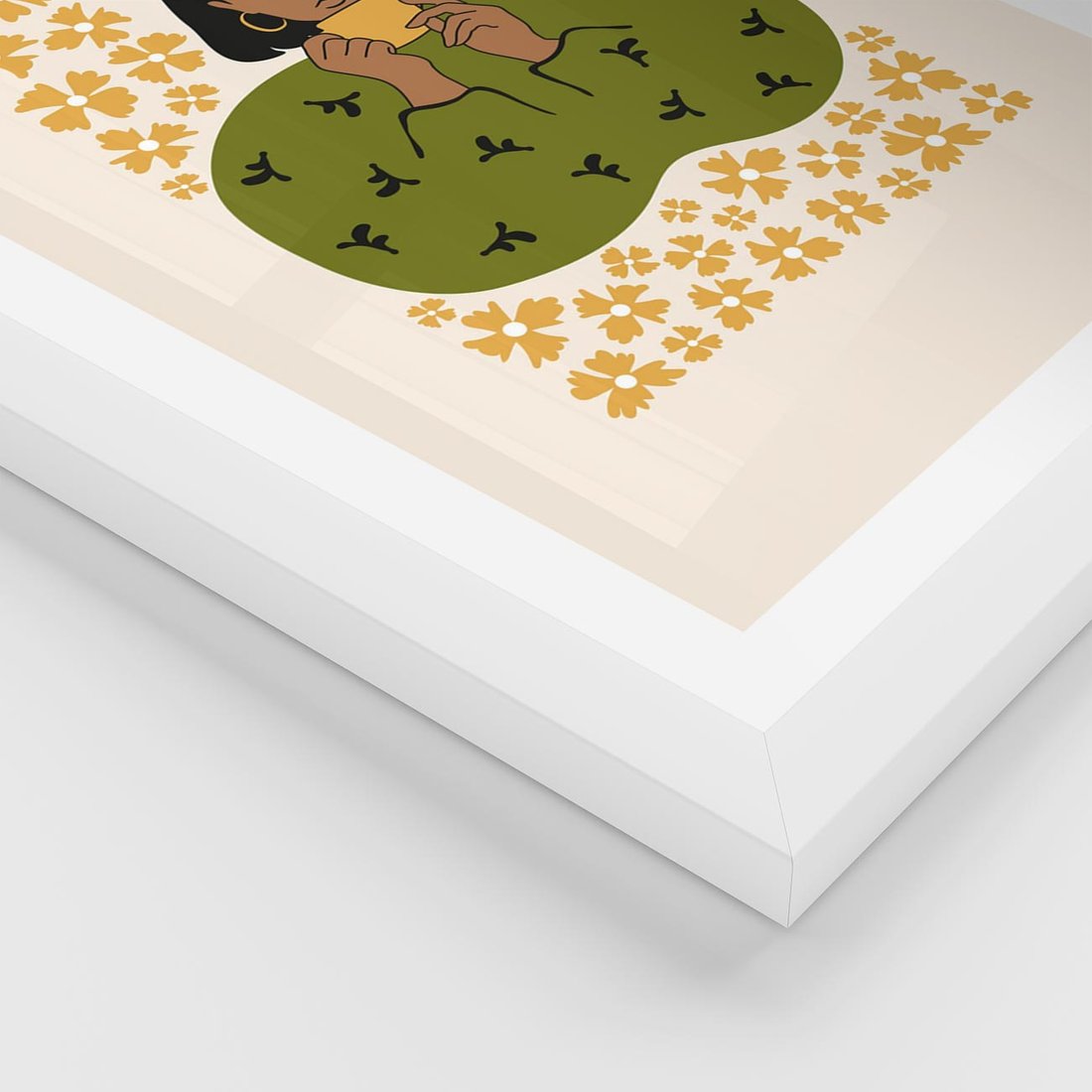 Plakat w ramie 40x50 - Wewnętrzne Fale - nowoczesny plakat, kobieta otoczona liśćmi - rama biała