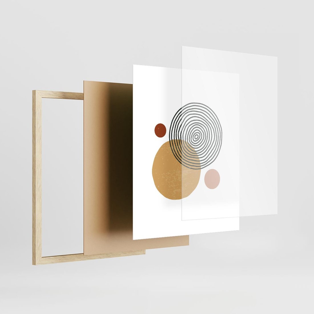 Plakat w ramie 40x50 - Wewnętrzne Formy - koła okręgi, abstrakcyjna nowoczesna sztuka - rama drewno