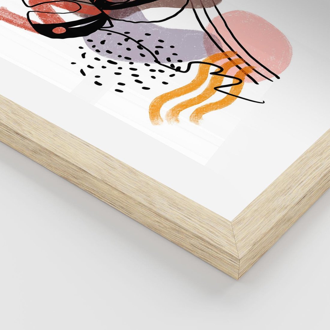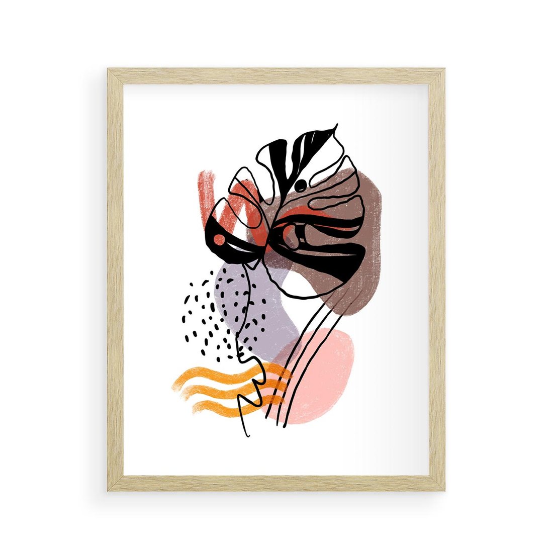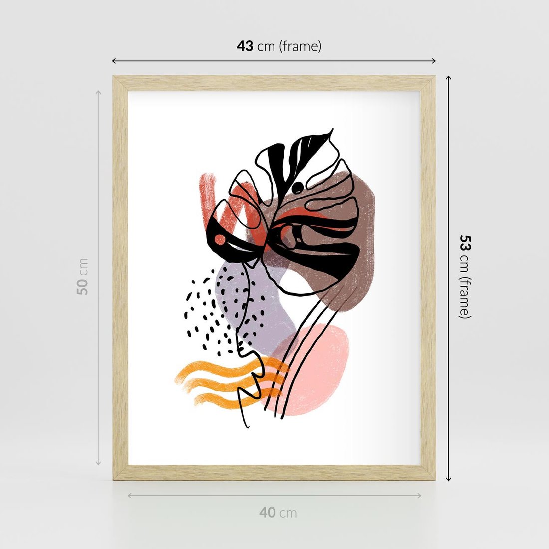 Plakat w ramie 40x50 - Wibracje Abstrakcyjnych Form - abstrakcyjna sztuka, liść monstery - rama drewno