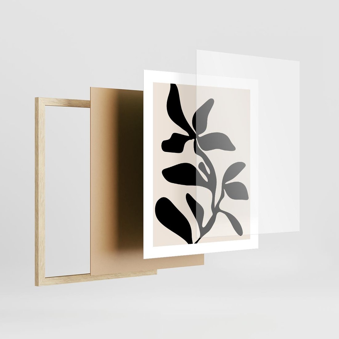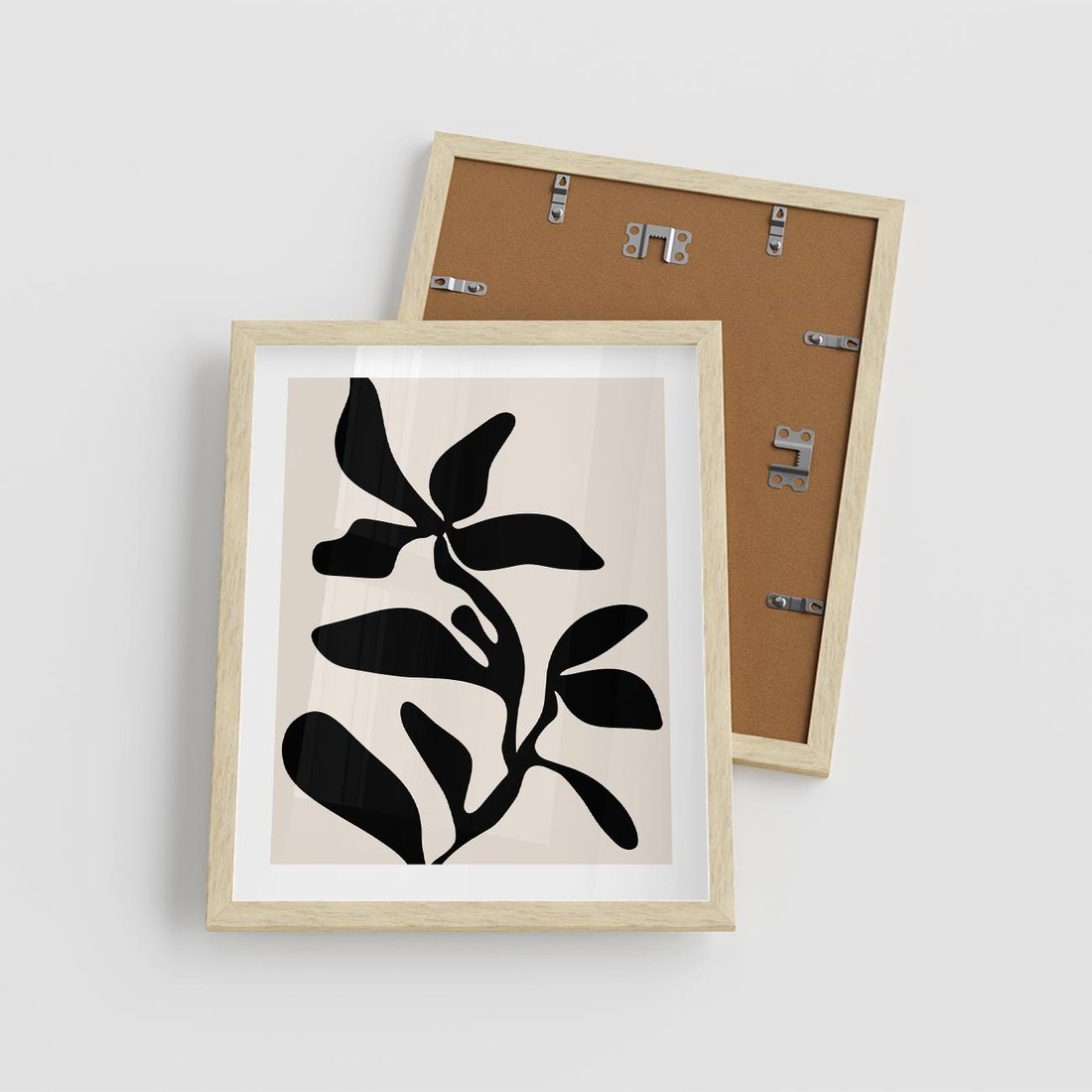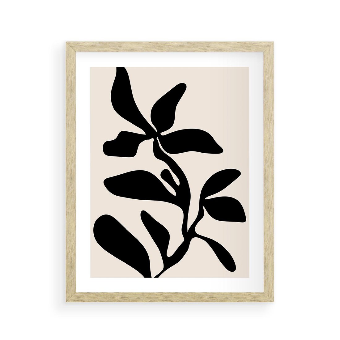 Plakat w ramie 40x50 - Wibracje Akwarelowych Ścieżek - abstrakcyjny minimalistyczna kwiat, czarno biały plakat - rama drewno