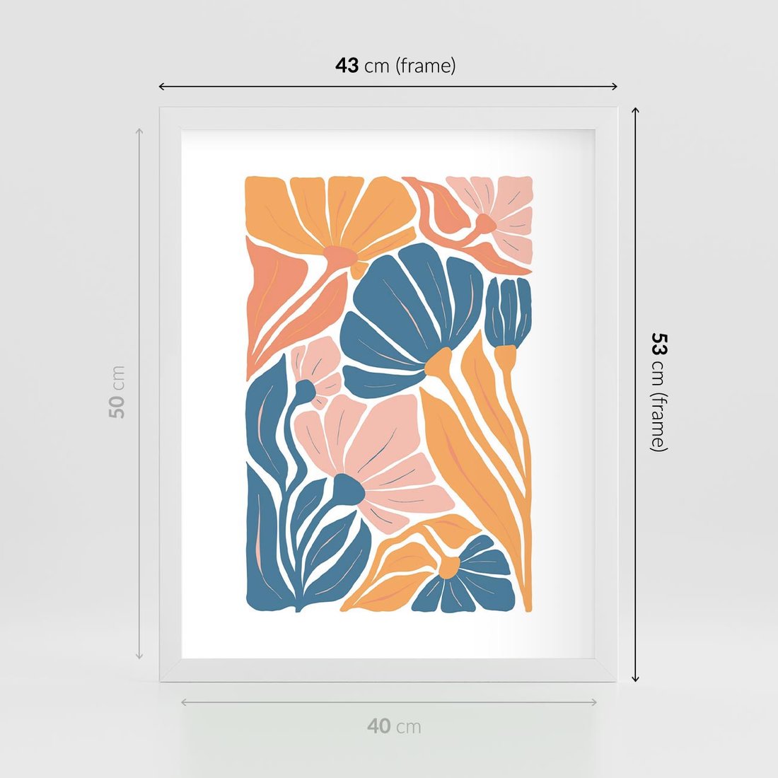 Plakat w ramie 40x50 - Wibracje Kolorowych Wiatrów - kwiaty, pastelowe kolory - rama biała