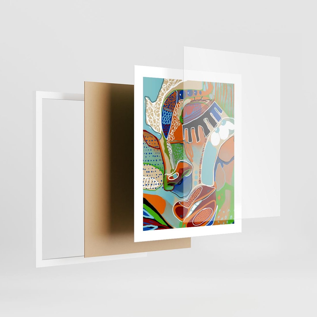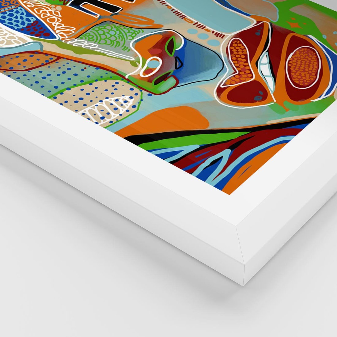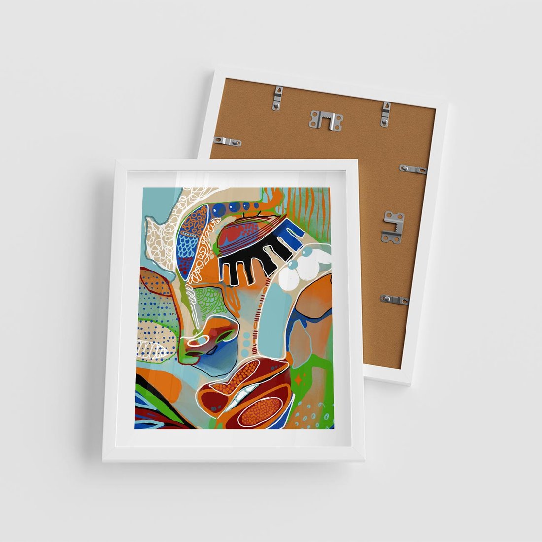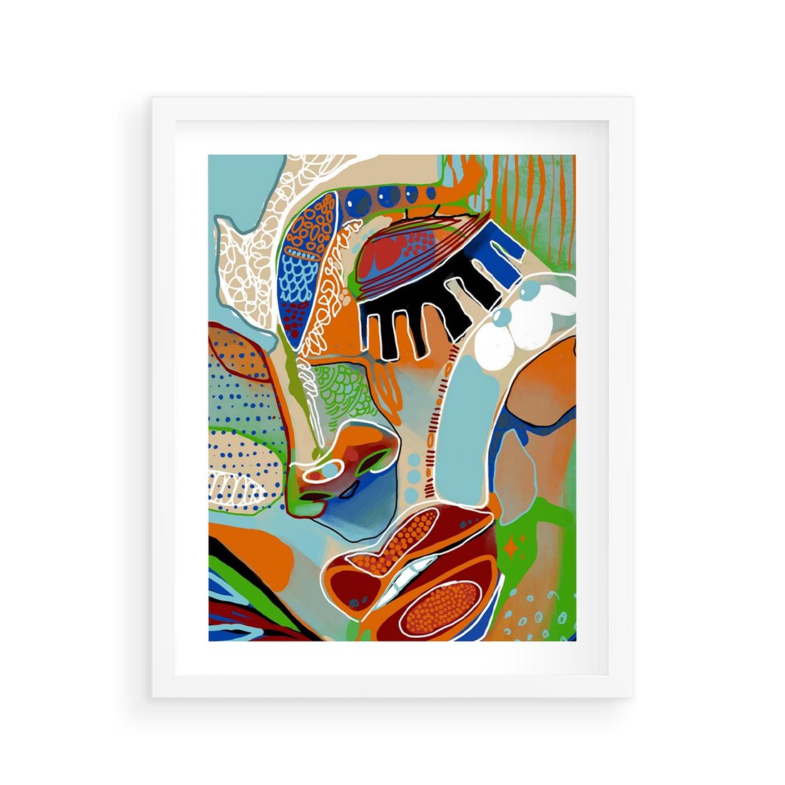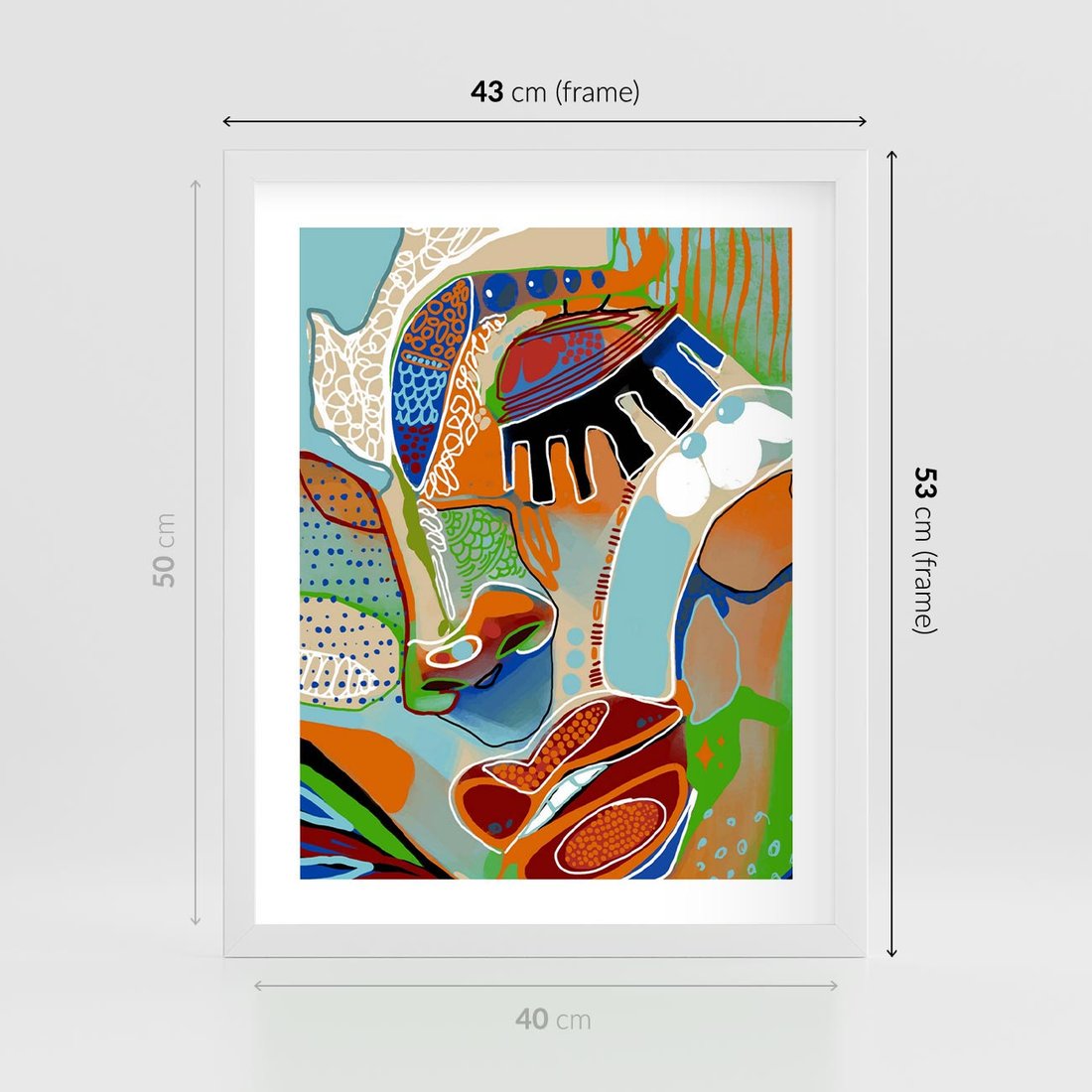 Plakat w ramie 40x50 - Wibracje Kształtów - abstrakcyjny portret kobiety, twarz - rama biała