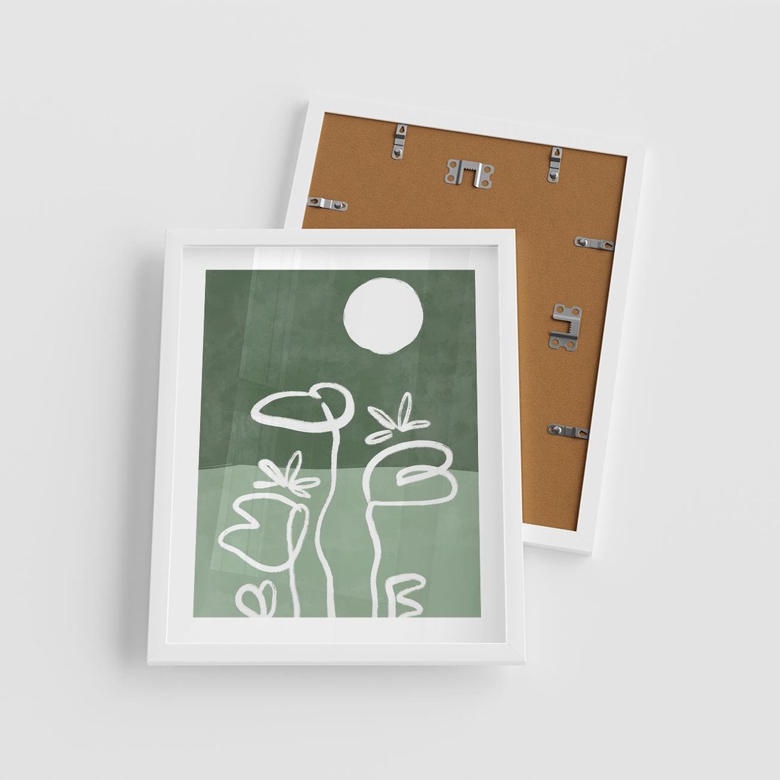 Abstrakcyjny zielony plakat, inspirowany naturą i roślinami, idealnie pasujący do nowoczesnych wnętrz. Minimalistyczny design dodaje spokoju i elegancji.