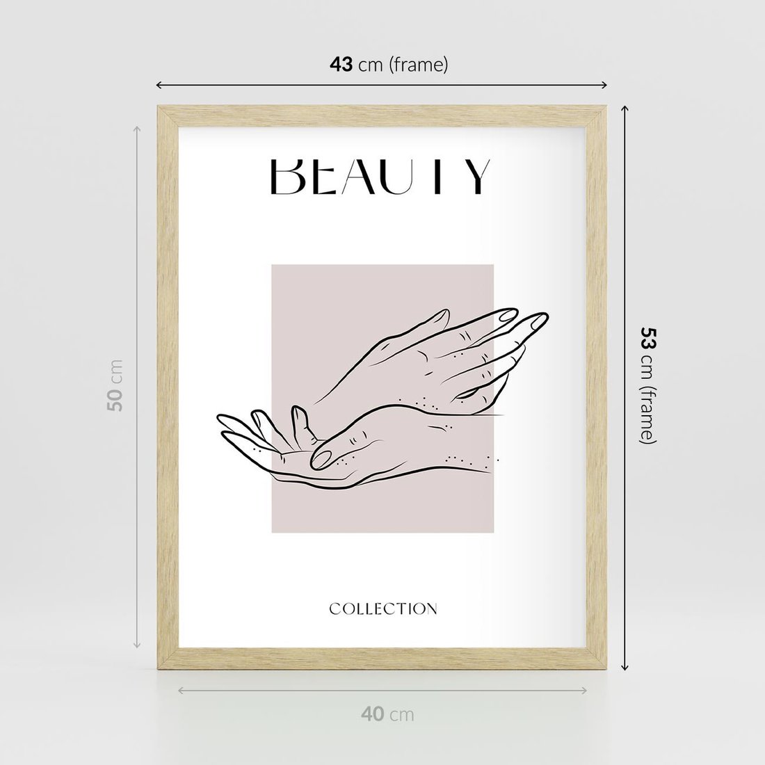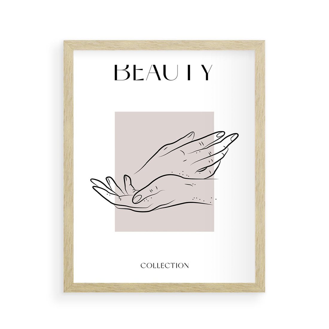 Ten boho plakat z delikatnie ułożonymi dłońmi i wyrazistą typografią "beauty" emanuje spokojem i elegancją. W minimalistycznym stylu oddaje piękno w najprostszej formie. Beżowe tło dodaje ciepła i harmonii, tworząc przestrzeń, która podkreśla naturalne piękno i równowagę.