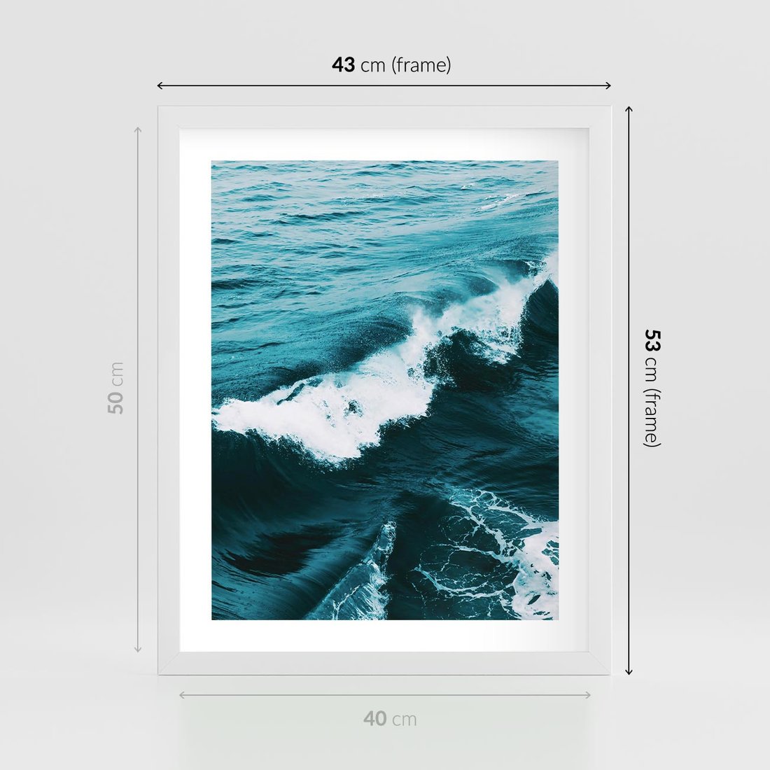 Plakat w ramie 40x50 - Wibracje Oceanu - turkusowy ocean, fale - rama biała
