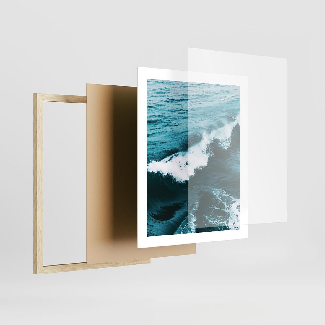 Plakat w ramie 40x50 - Wibracje Oceanu - turkusowy ocean, fale - rama drewno