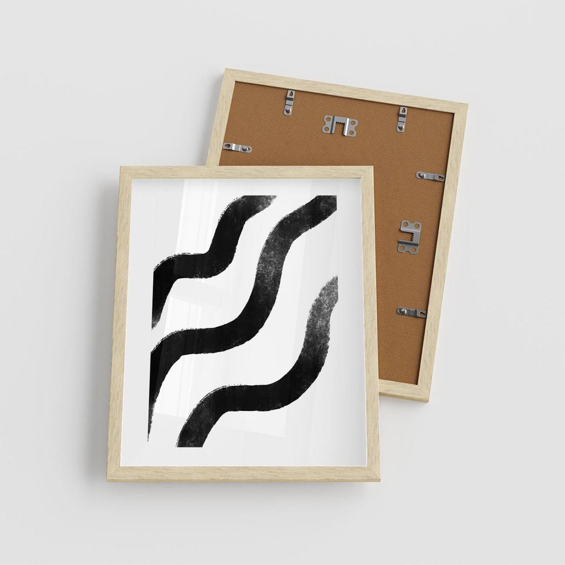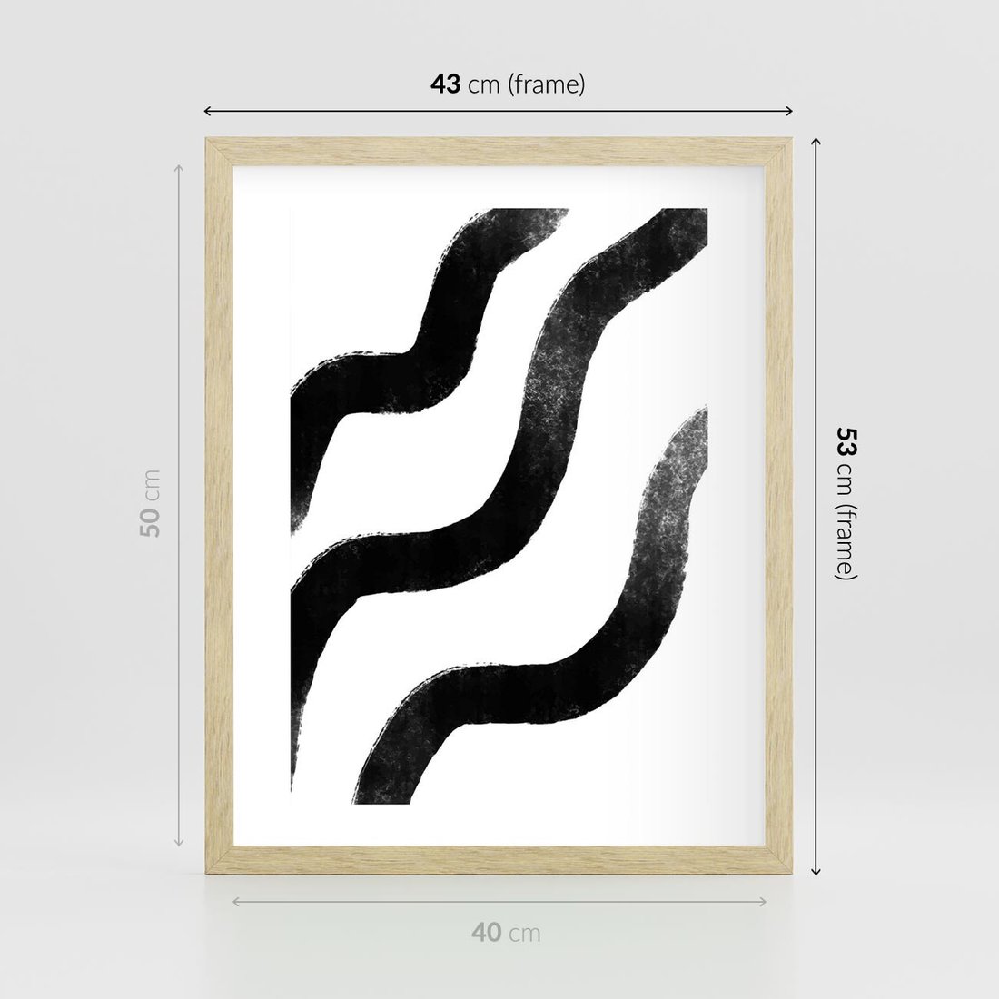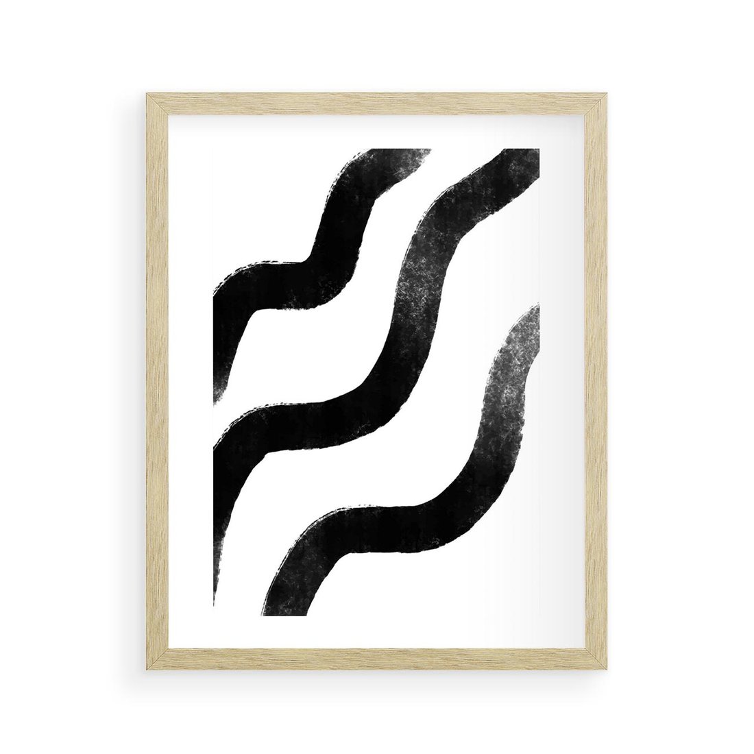 Ten minimalistyczny obraz abstrakcyjny w stylu modern art charakteryzuje się czarnymi falującymi liniami, które tworzą dynamiczną i wyrazistą kompozycję. To dzieło sztuki doskonale oddaje ducha nowoczesności i minimalizmu, nadając się idealnie do współczesnych wnętrz.