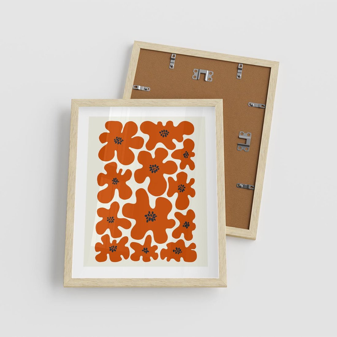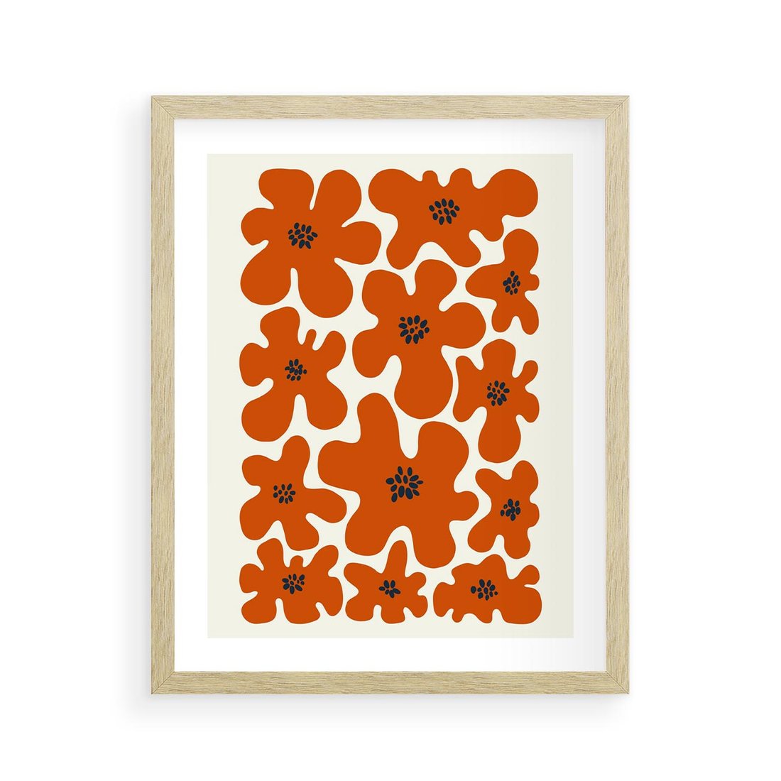 Plakat w ramie 40x50 - Wibracje Przestrzeni - abstrakcyjne czerwone kwiaty, kompozycja - rama drewno