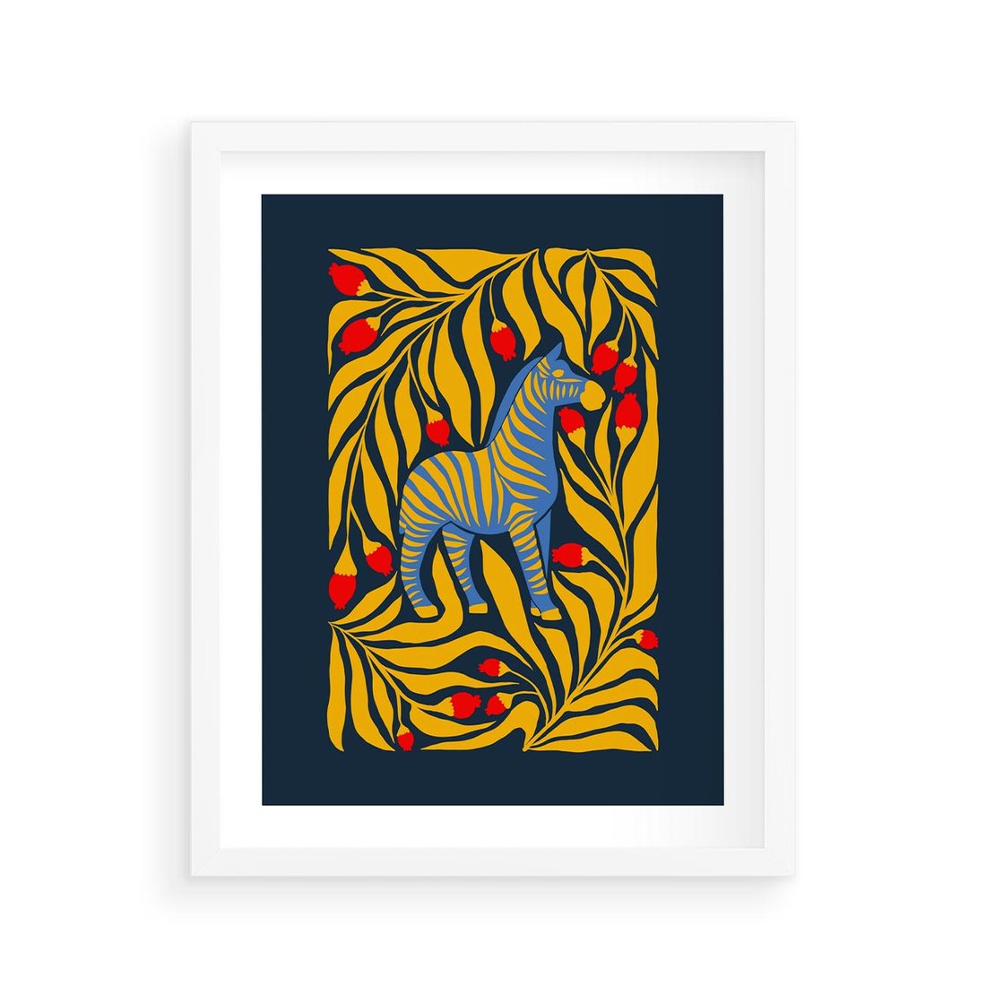 Plakat w ramie 40x50 - Wibracje Wyobraźni - zebra, granatowe tłó - rama biała