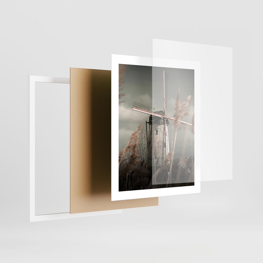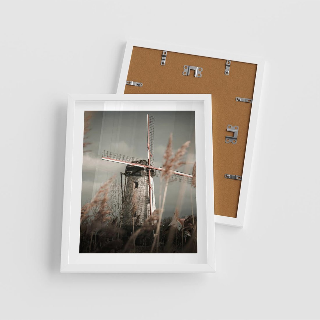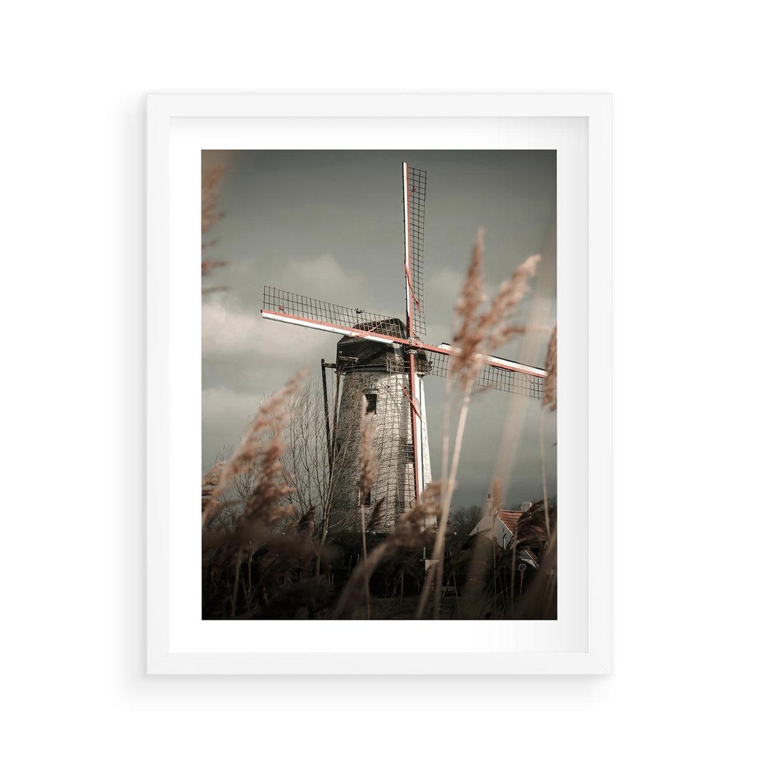 Plakat w ramie 40x50 - Wiejska Idylla: Młyn w Polu - wiatrak, młyn w polu - rama biała