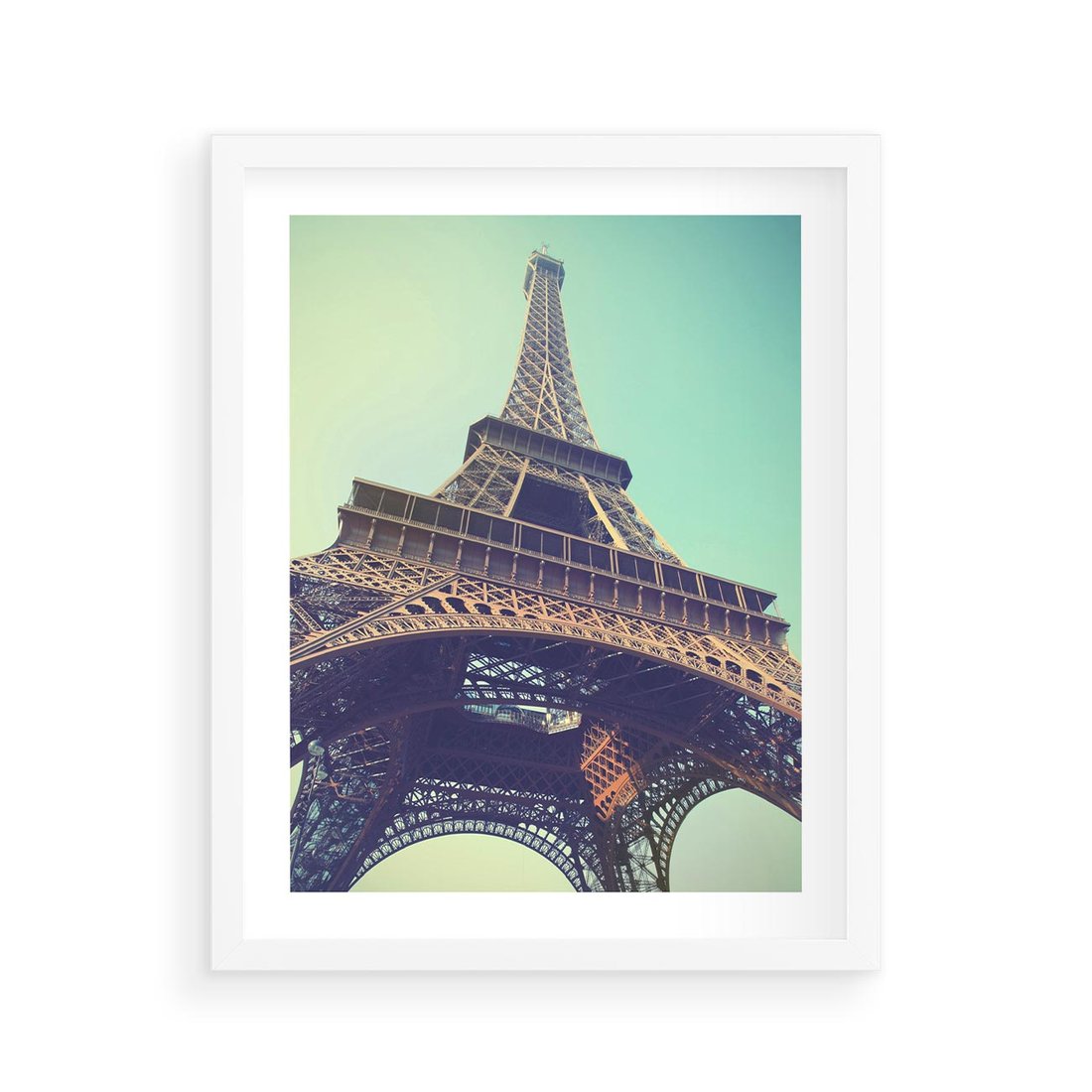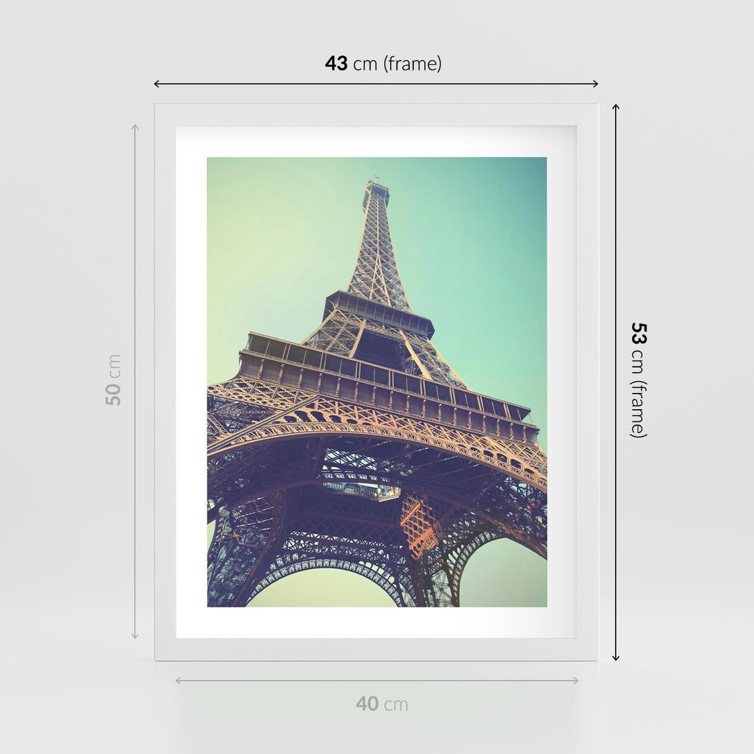 Plakat w ramie 40x50 - Wieża Eiffla w czarno-białej odsłonie - Eiffla, Paryż - rama biała