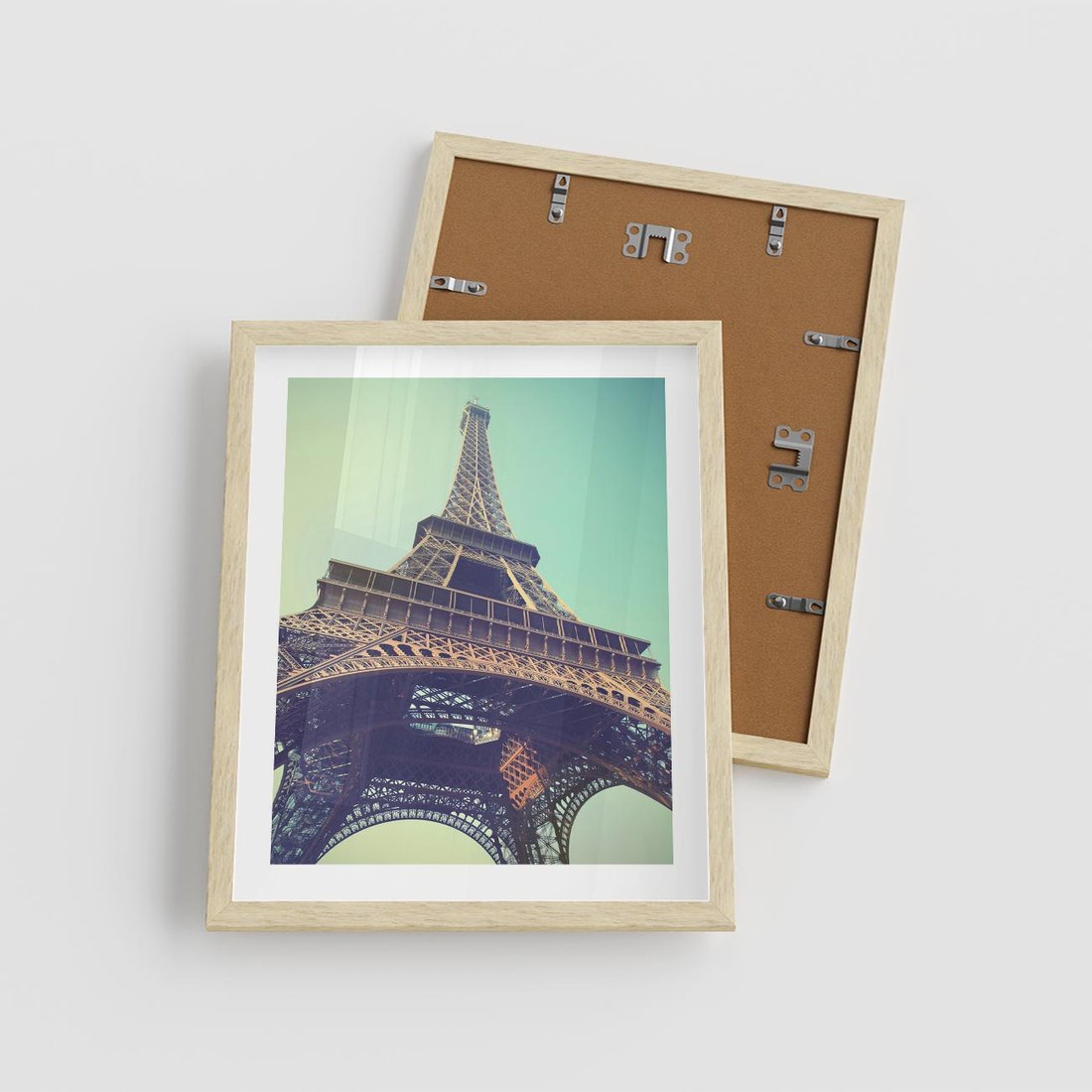 Plakat w ramie 40x50 - Wieża Eiffla w czarno-białej odsłonie - Eiffla, Paryż - rama drewno