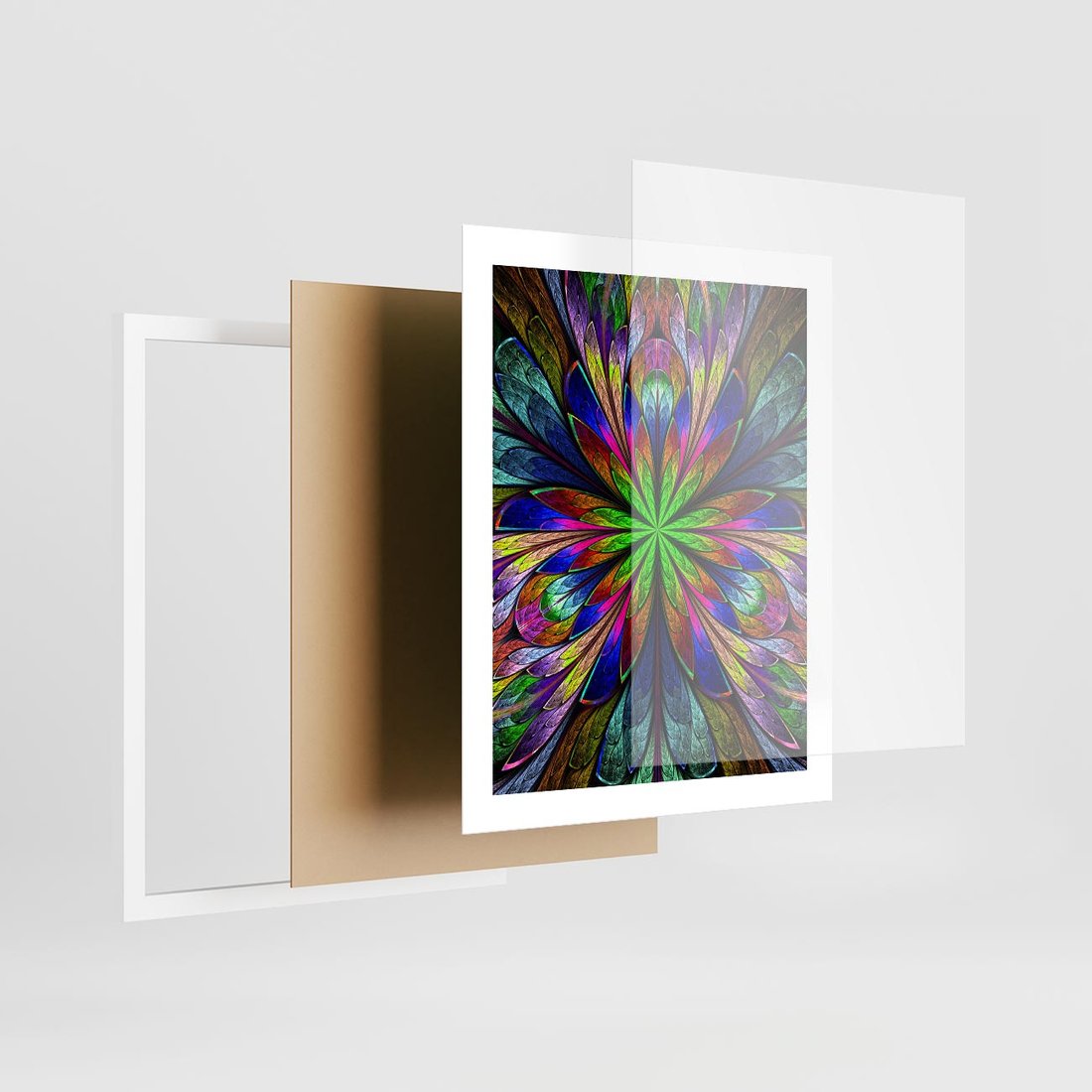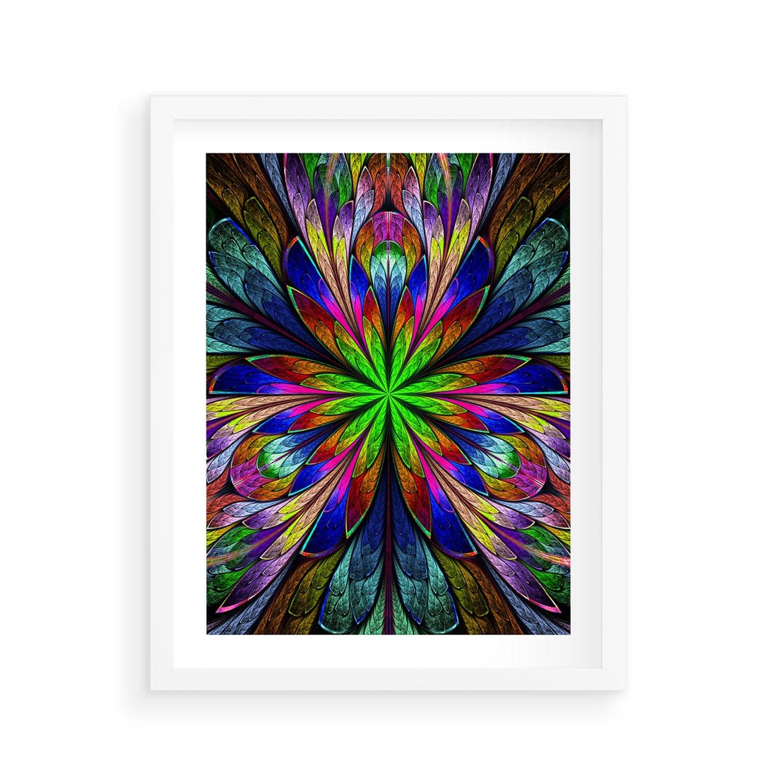 Plakat w ramie 40x50 - Witrażowa magia na płótnie - witraż, sztuka - rama biała