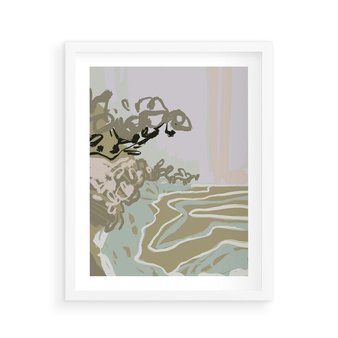 Plakat w ramie 40x50 - Wizja Przestrzeni - pastelowy krajobraz, nowoczesny plakat - rama biała